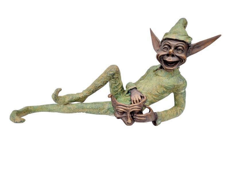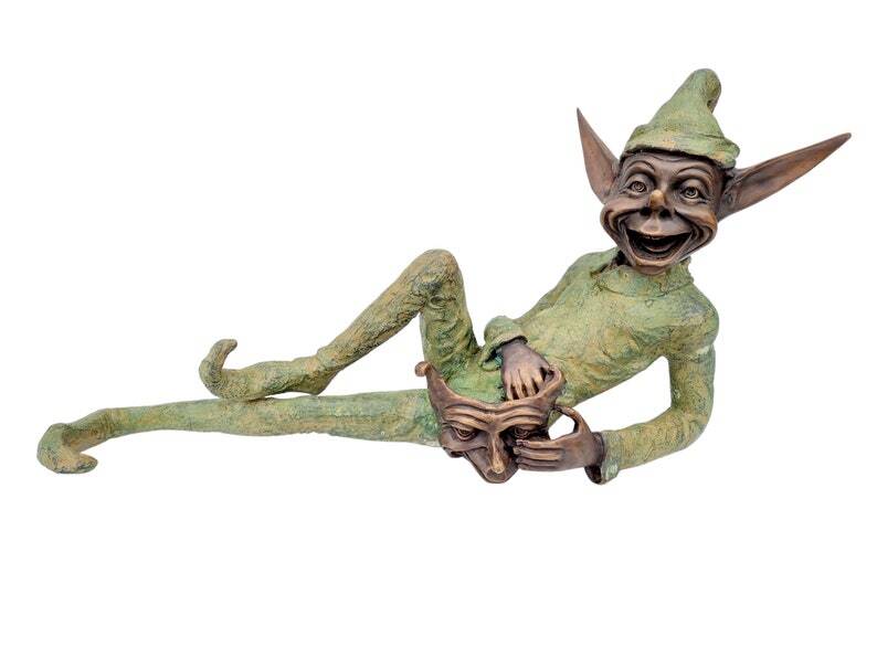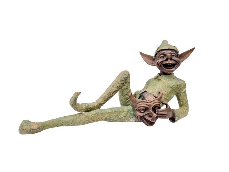 Extra large garden pixie - Bronze lawn art - Bronze garden gnome
