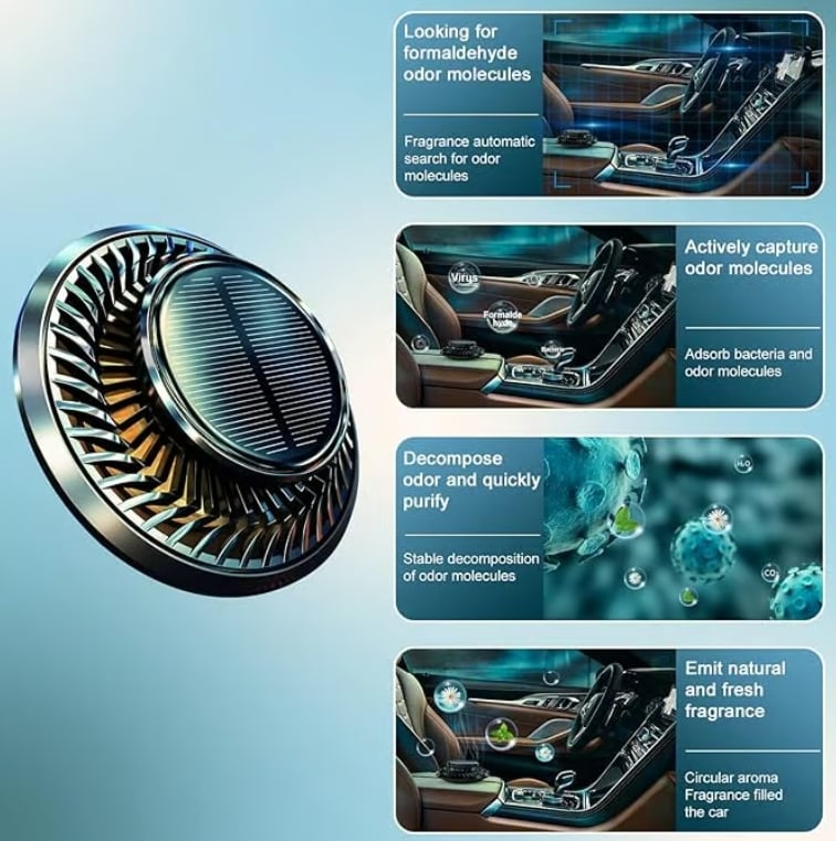 Solar Rotating Double Ring Suspension Car Aromatherapy Ornament