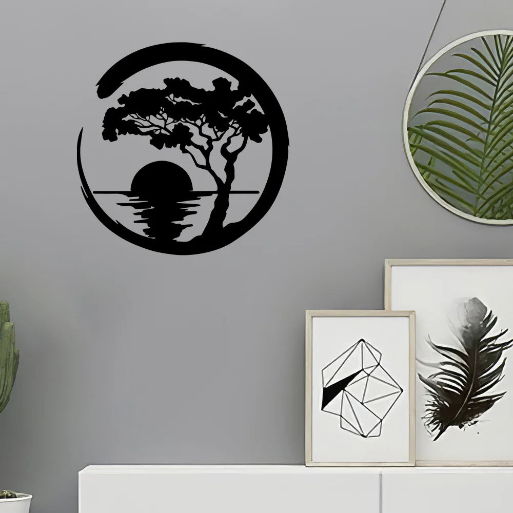 Romantic Sunset Old Tree Metal Wall Art - Silhouette Wall Decor for Living Room, Bedroom, Office, or Entryway - Modern Home Crafts Decoration