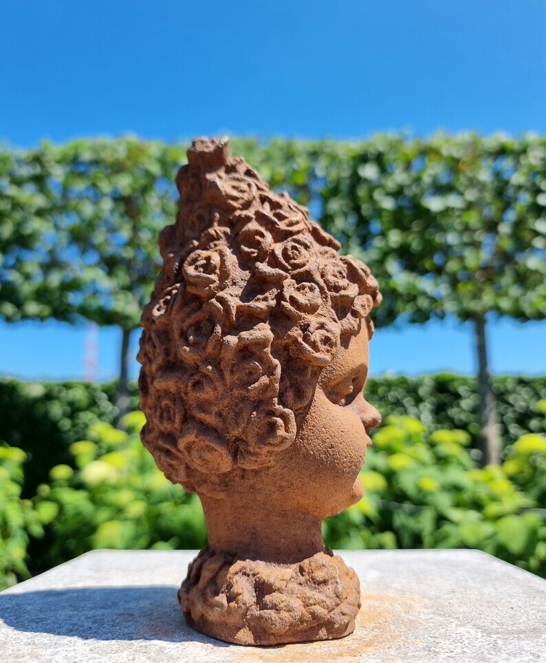 Cast Iron Garden Ornament - Forest Elf - Pixie of the Woods - Child's Head - Magical Garden Design