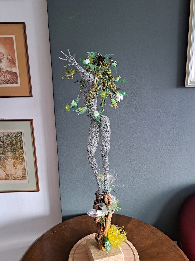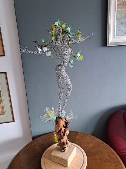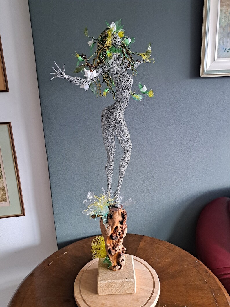 Golden May Day Fairy, wire art sculpture, wire May Fairy, Wire fairies statue, Earth reborn art, Design home decor, Lady of Spring Flowers