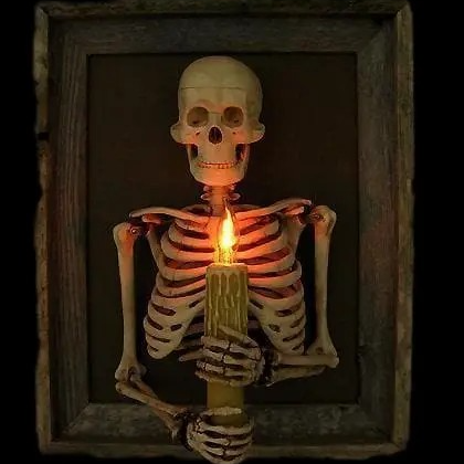 ☠️【Decorate anytime】This Beautifully Framed 3D Life Size Skeleton with Pillar Candles is a custom high quality decoration ready to hang and decorate your home.
