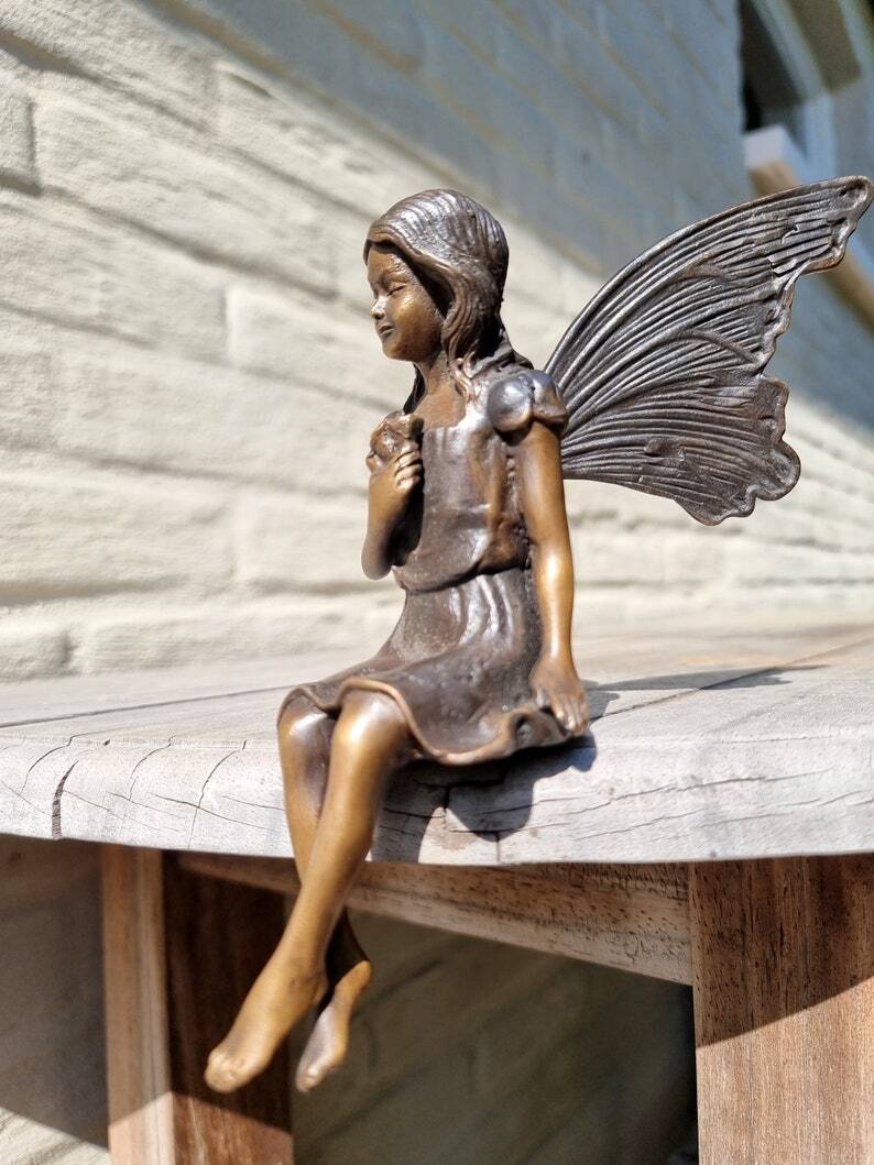 Lovely little garden fairy - Bronze figurine - Home and garden ornaments