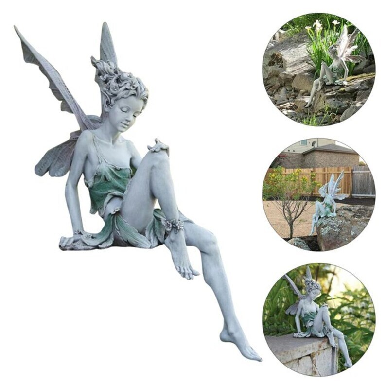 Tudor And Turek Resin , Sitting Fairy Statue Garden Decorative Porch Figurine Angel Sculpture, Handmade flower fairy statue sitting