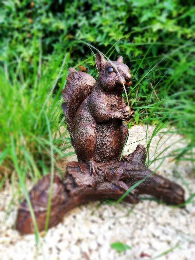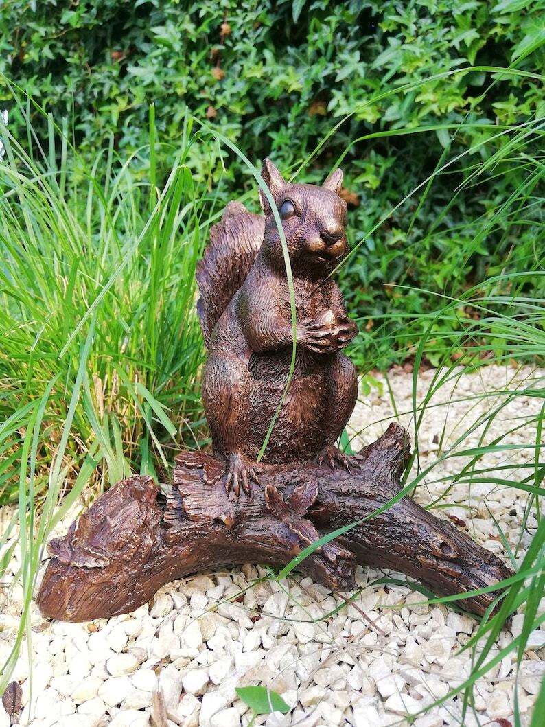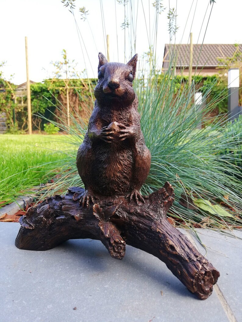 Bronze sculpture of a squirrel on a stump - Garden decor - Bronze porch decor