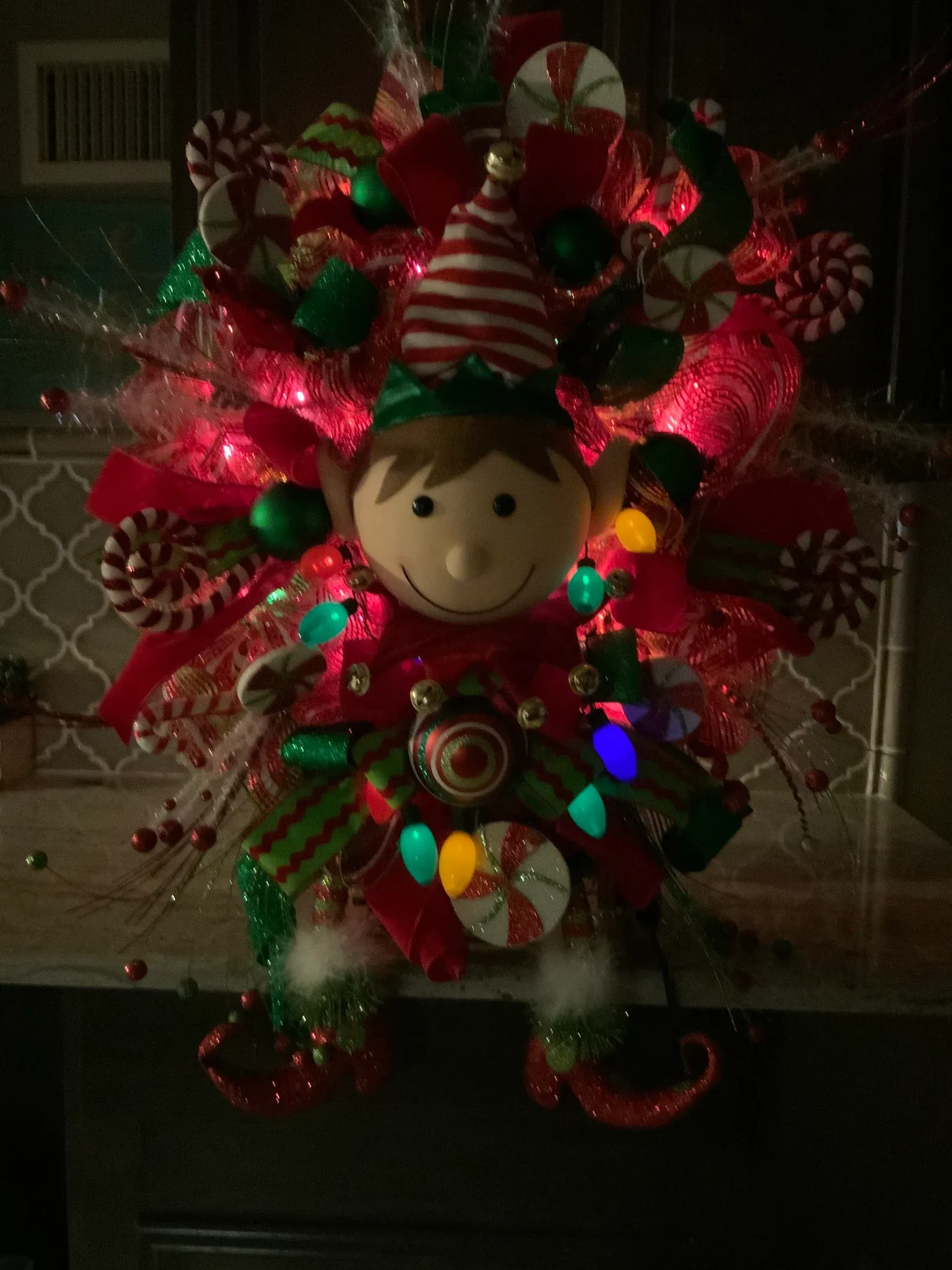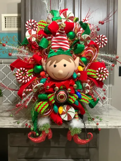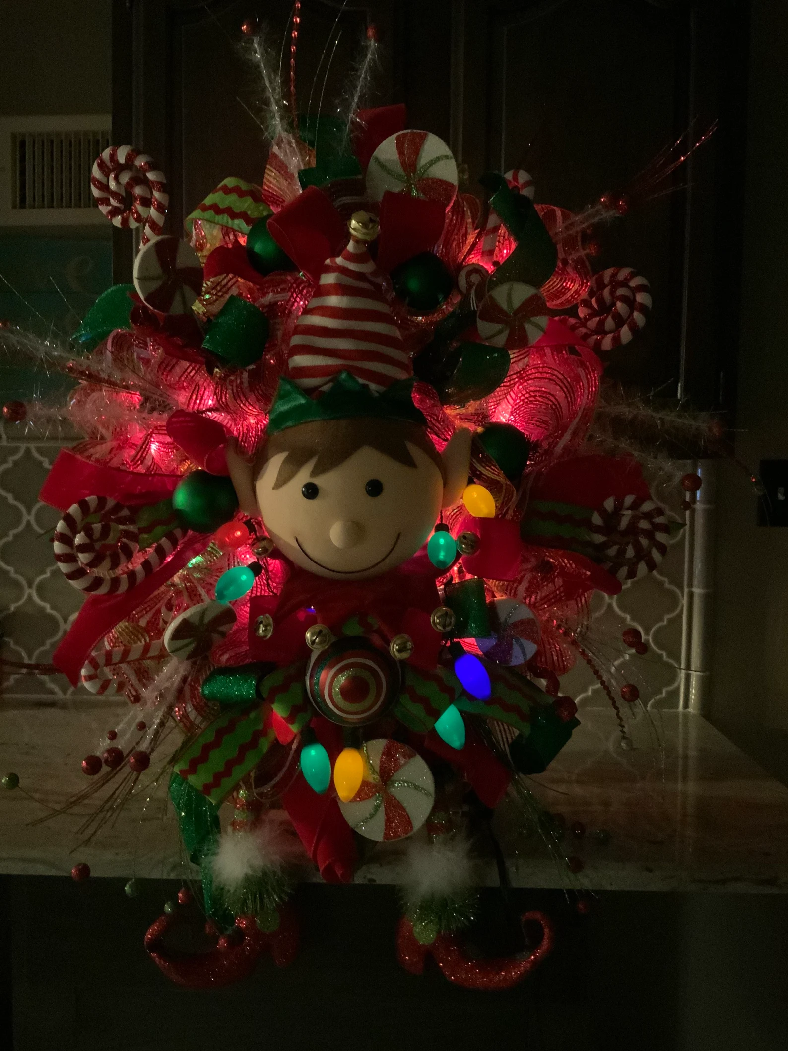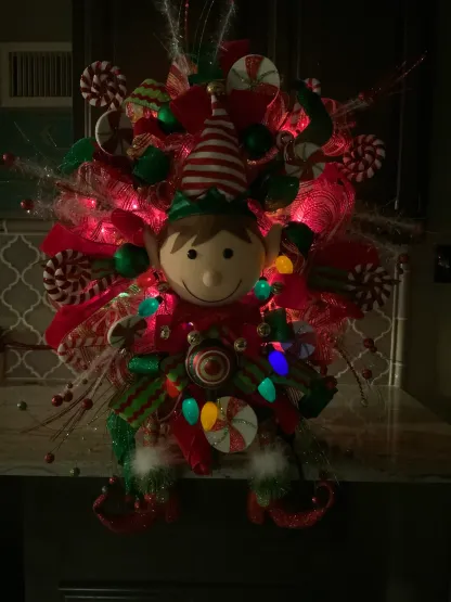 Elf Wreath, Lighted Christmas wreath, Christmas Door wreath, Door Decor, christmas Decor