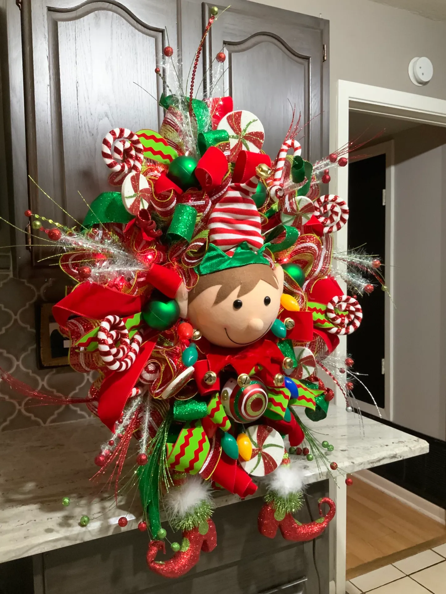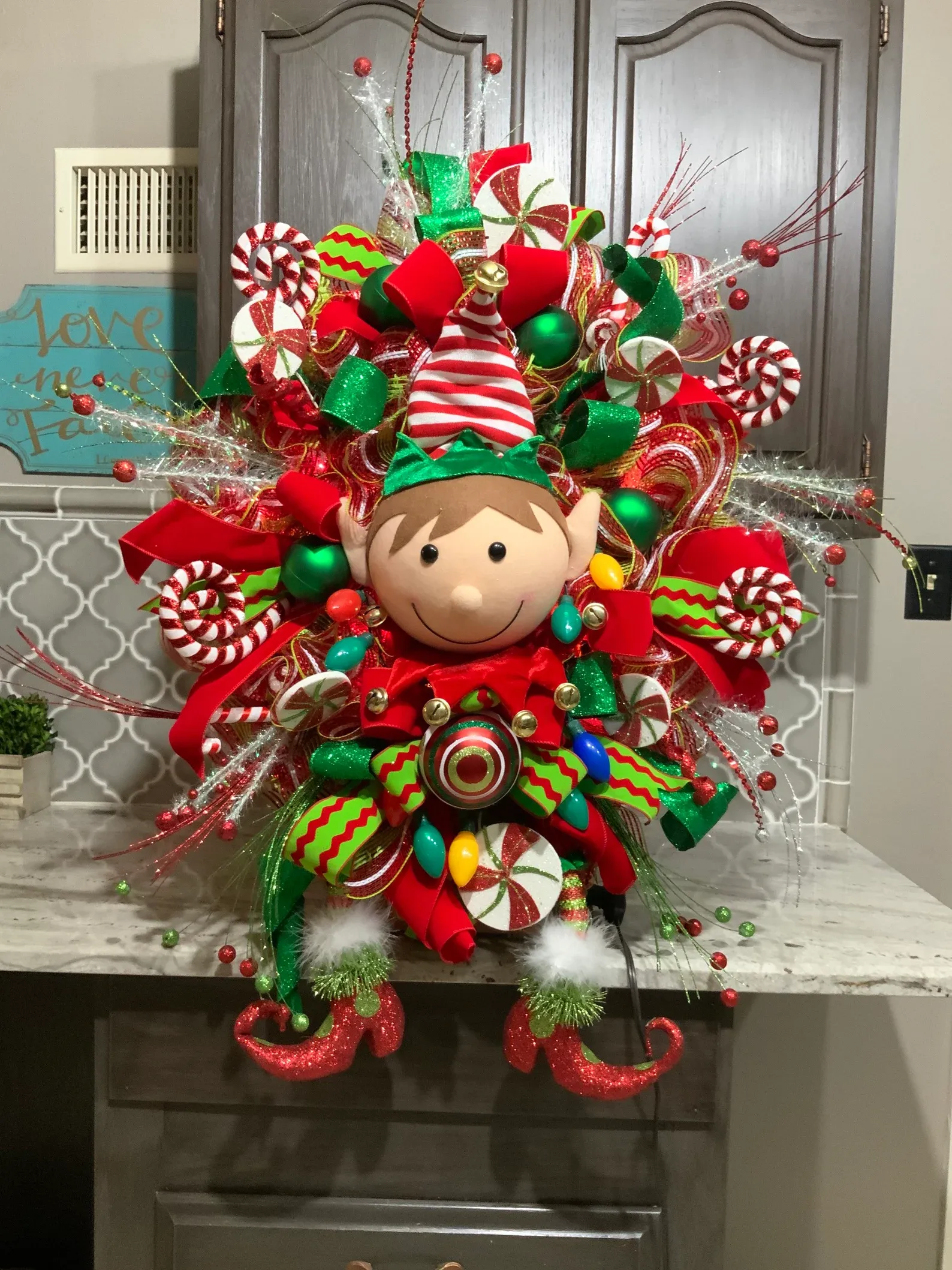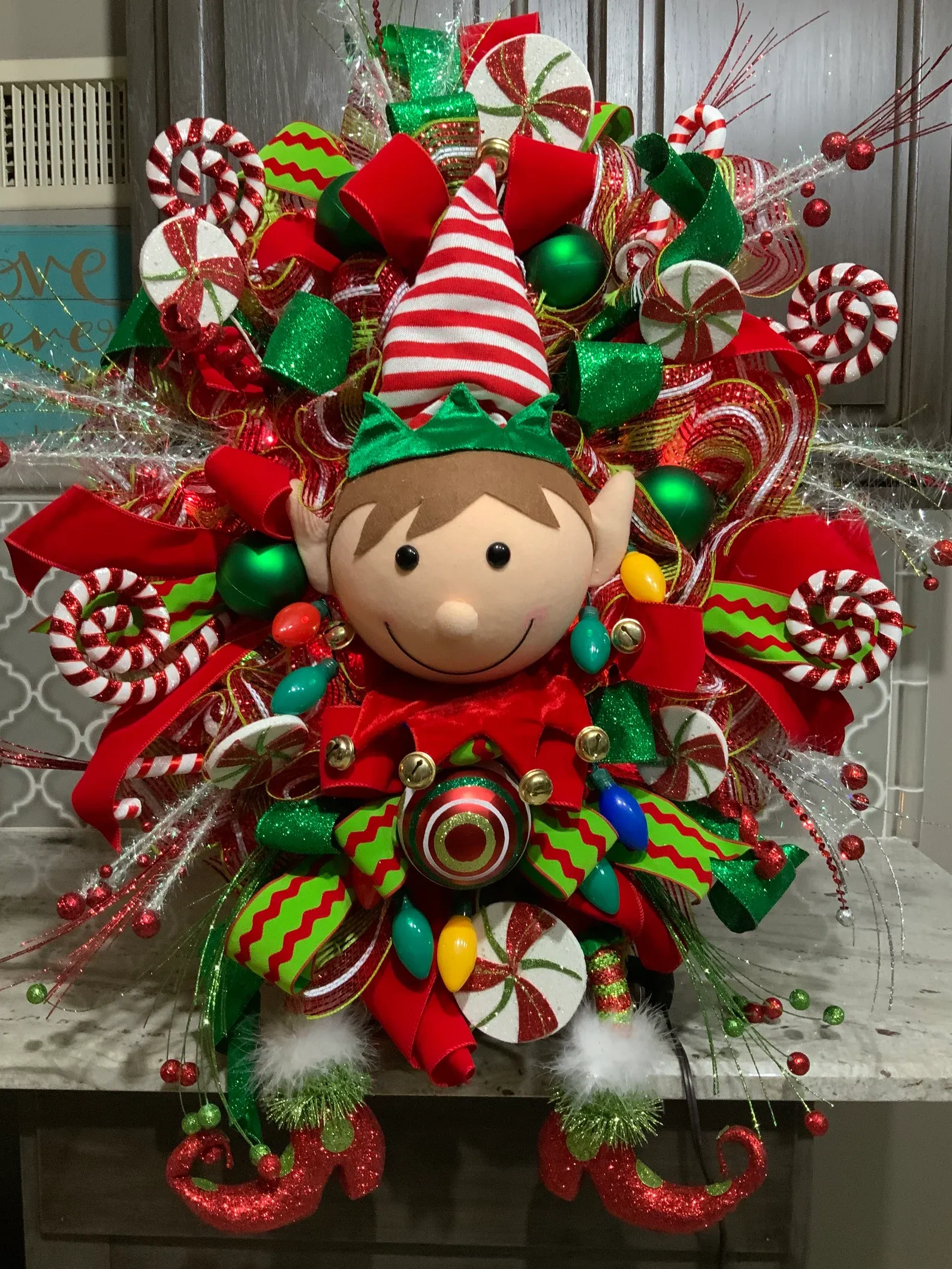 Elf Wreath, Lighted Christmas wreath, Christmas Door wreath, Door Decor, christmas Decor
