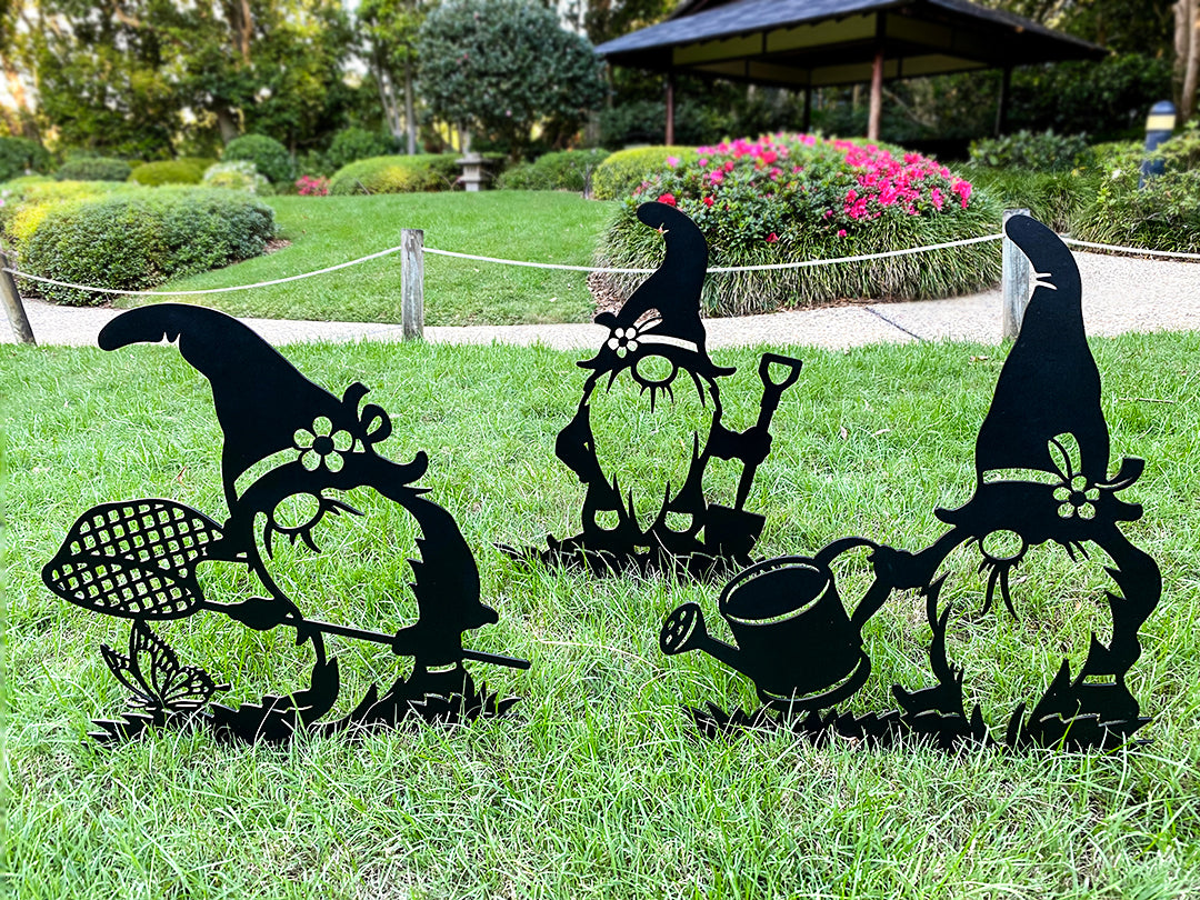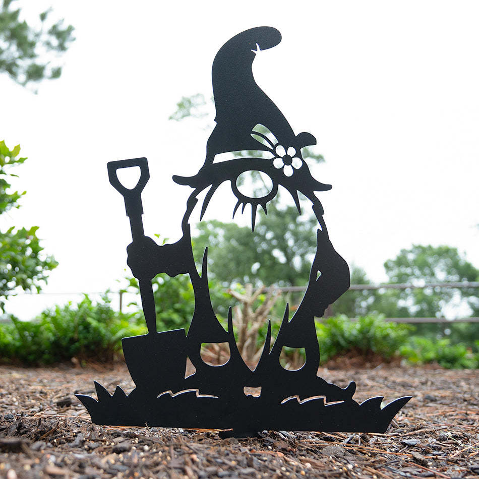 【Symbol of Luck】- Gnome is excellent for spreading the traditional spirit. In folklore, Gnome guards home and protect people from misfortune. It brings good luck to family and is regarded as good luck. 【High Material】- Garden gnomes are of good quality. They are made of 11 gauge corten steel and can stand for a long time in normal weather. 【Matte Black Finish】 - Using high-quality metal iron as materials, pure hand-made, Black Anti-corrosion coating can ensure that the surface of the gnome is not discolored and can prevent corrosion. 【Easy To Install】- The design of the corten steel make it easy to insert the Easter lawn yard sign, complete the installation process in a relaxed and pleasant atmosphere. 【Garden Decoration】- Metal Garden Gnomes look great around flowers and shrubs, and they help explain why your garden always looks so great!
