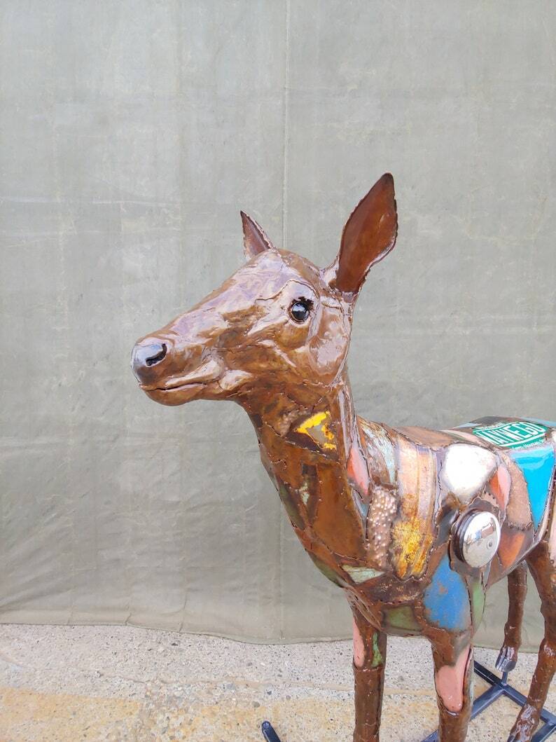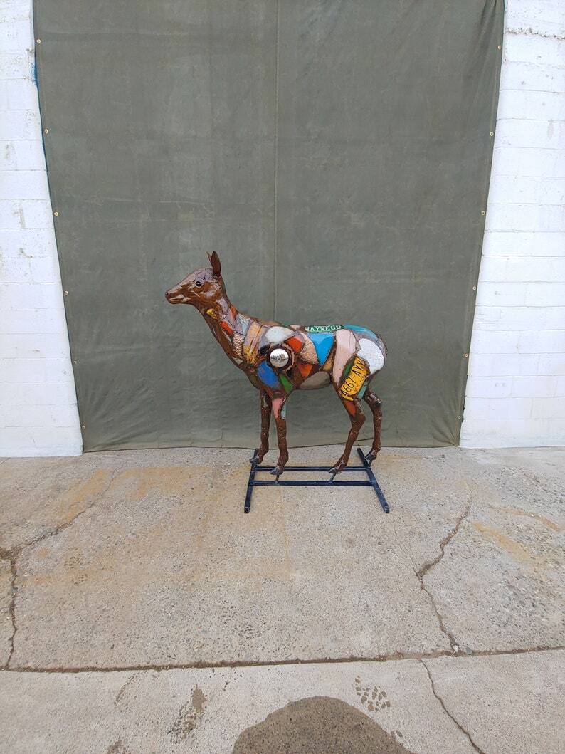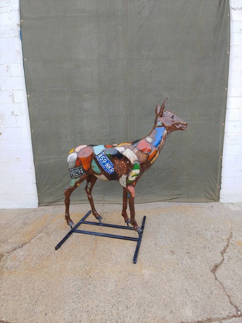 Life-Size Reclaimed Colorful Metal Deer Sculpture