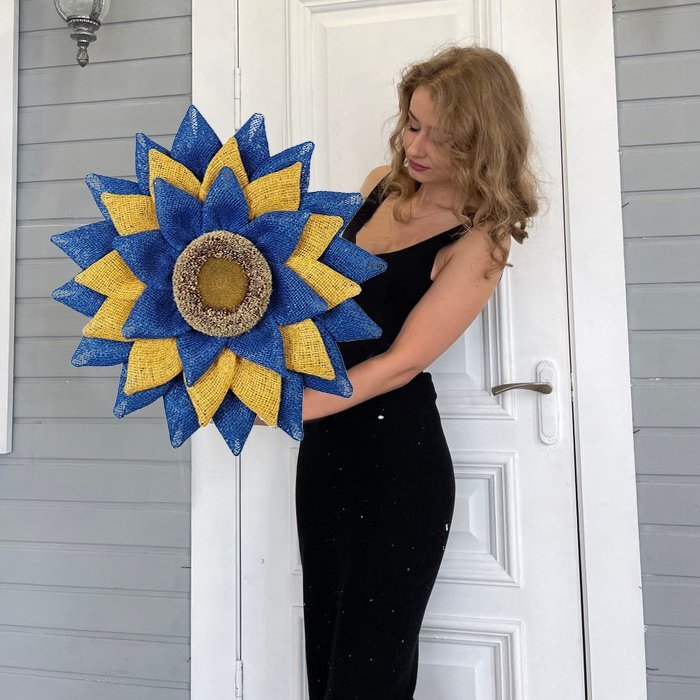 🌞This blue and yellow sunflower flower wreath done in the colors of the Ukrainian flag can be hung on your front door to show your solidarity with Ukraine.😔😔😔Show your support for the Ukraine and everybody involved in this tragic set of events. Praying for Ukraine 🙏🏾💛💙🇺🇦