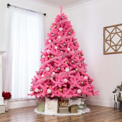 Pink Artificial Fir Christmas Tree w/ Foldable Stand