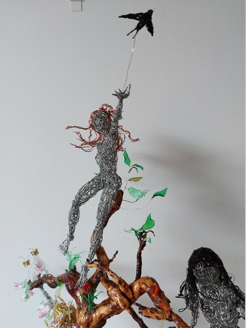 Four Seasons sculpture, Spring Summer Fall Winter, Fantasy wire fairy, Earth reborn, Metal home decor, Mixed media statue
