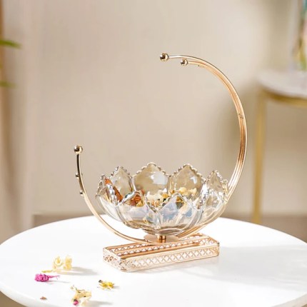 Crafted with premium crystal glass and a sleek metal frame, this bowl exudes sophistication and timeless charm. Whether you use it to hold fruits, decorative pieces, or even tealight candles, its shimmering design creates a mesmerizing visual effect that enhances any room!