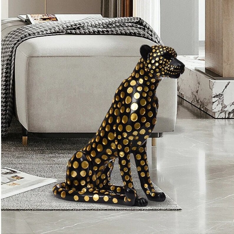 Leopard Statues Home Decor Resin Interior Figurines Office Living Room Decoration Creative Home Accessories Artwork Gift