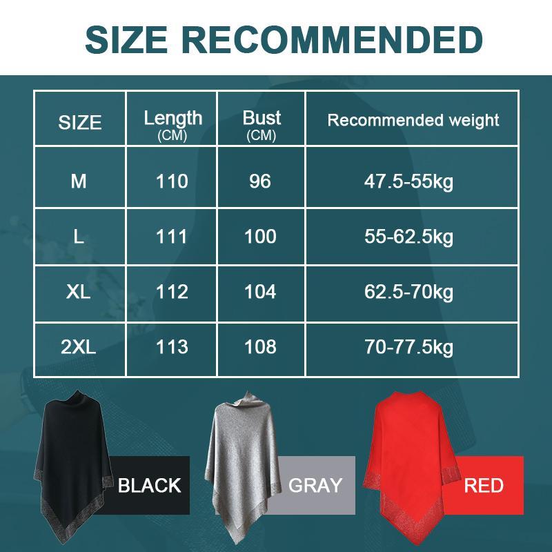 There are four sizes, M, L, XL, XXL. Bat sleeve cape, suitable for all body types. Detailed workmanship with carefully stitched edges without loose thread or defects.