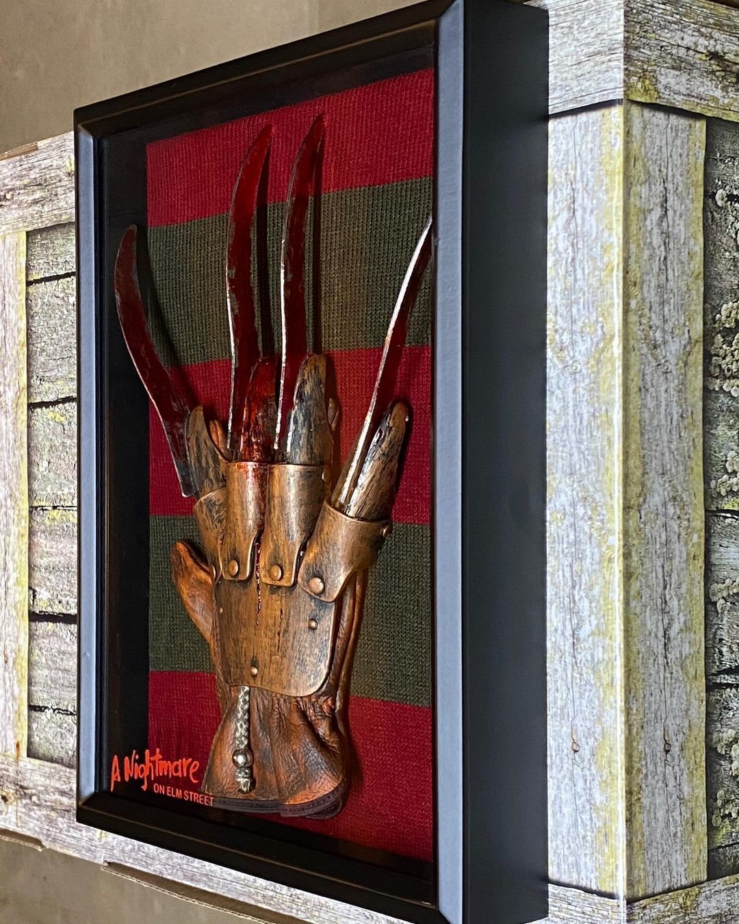 🔥Embrace the darkness and bring a touch of nightmare to your living space. Order your own Freddy Krueger Glove Shadow Box today and let the Nightmare on Elm Street rule your home.