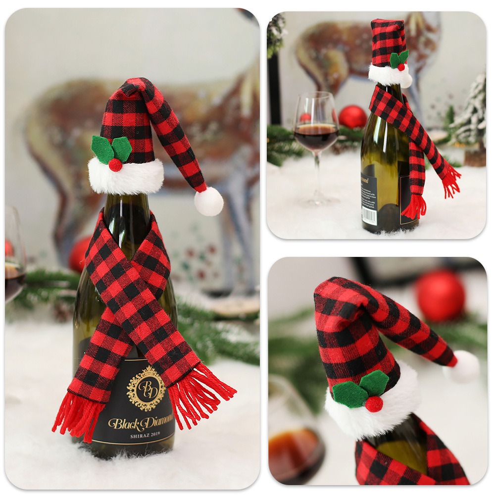 Red Wine Bottle Stopper Kitchen Christmas Decor Set