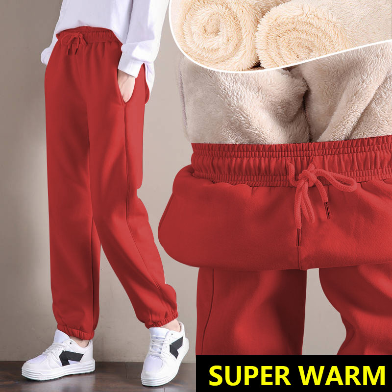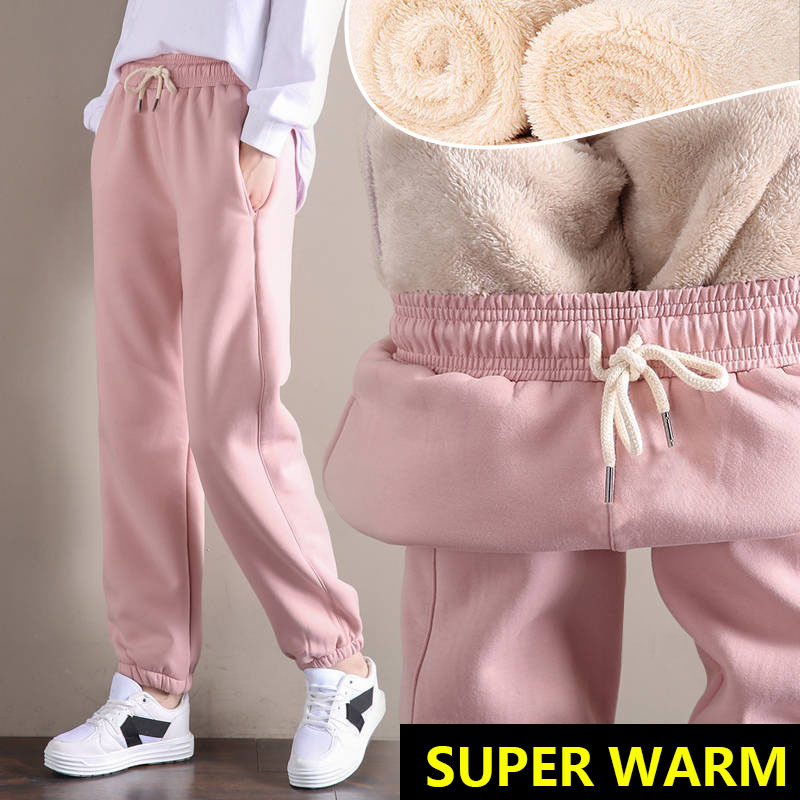 Women Warm Fleece Cotton Round Neck Solid Joggers Sweatpants