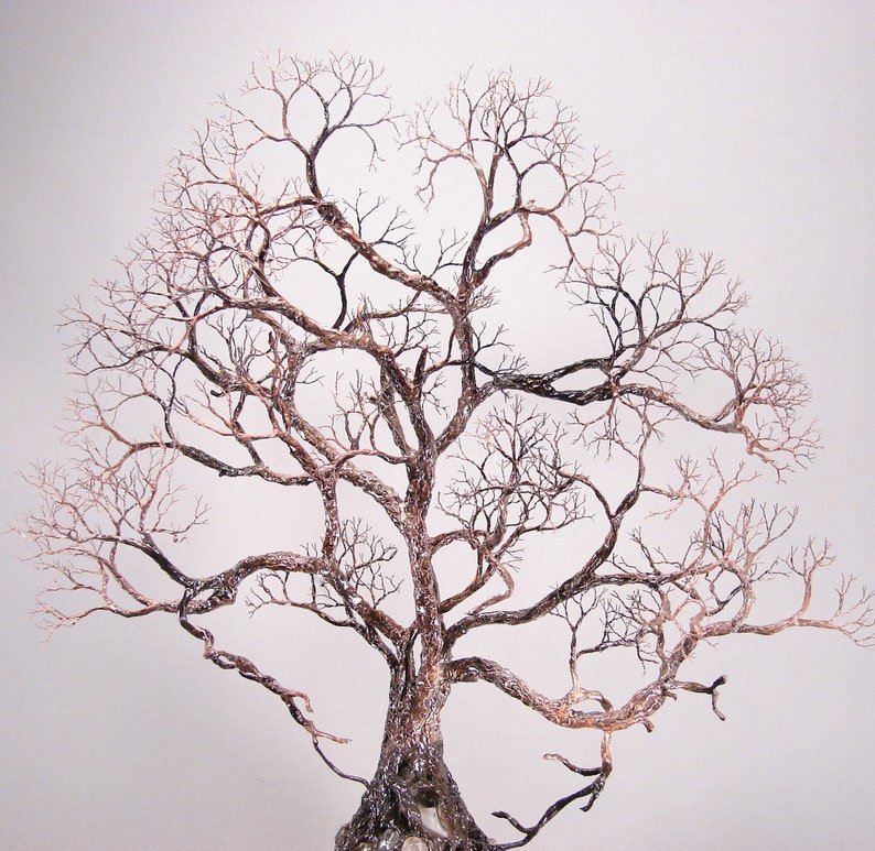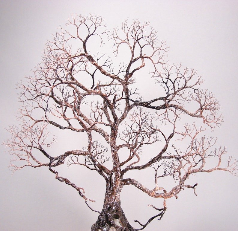Sculptured tree with a blend of black, bronze and copper to enhance the texture.