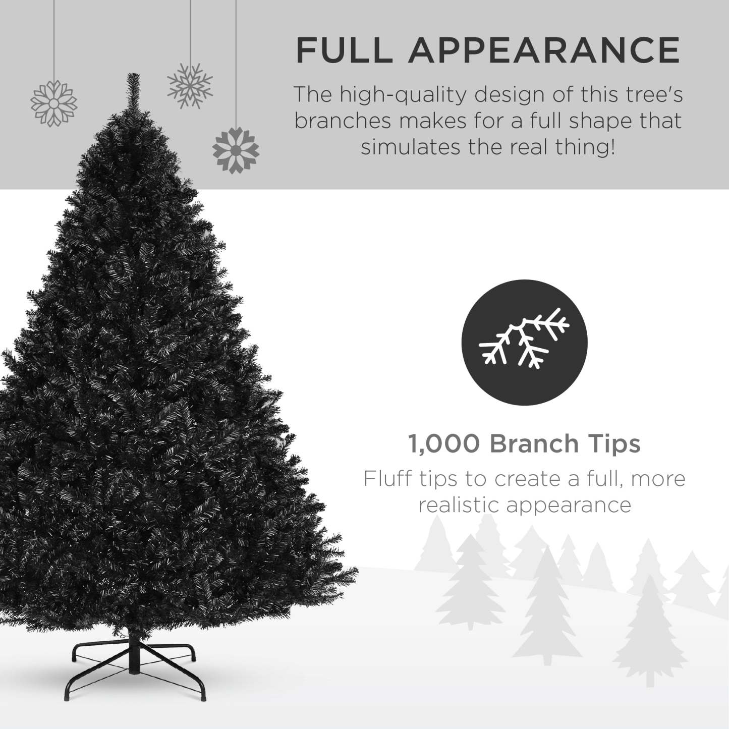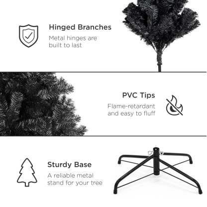 Black Artificial Christmas Tree w/ Easy Assembly, Foldable Metal Stand