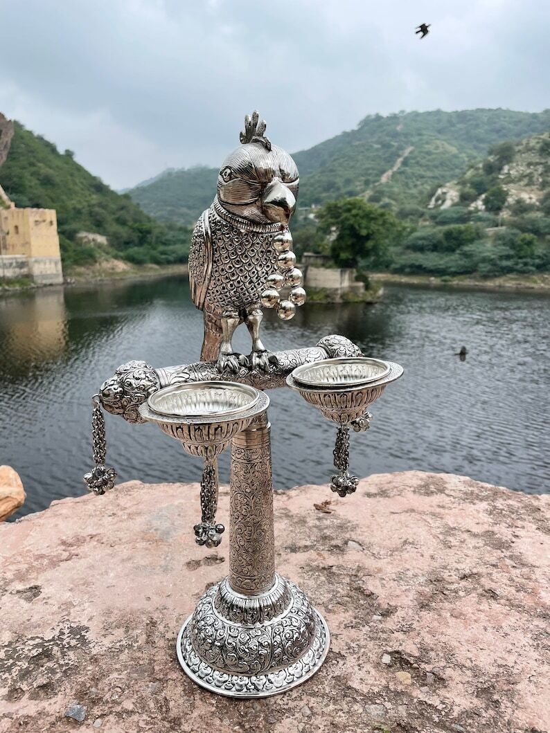 Copper Silver polish Parrot figure, Bird figure, Bird statue, Candle holder, Antique collectible