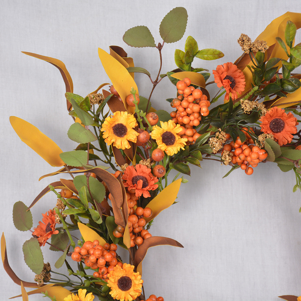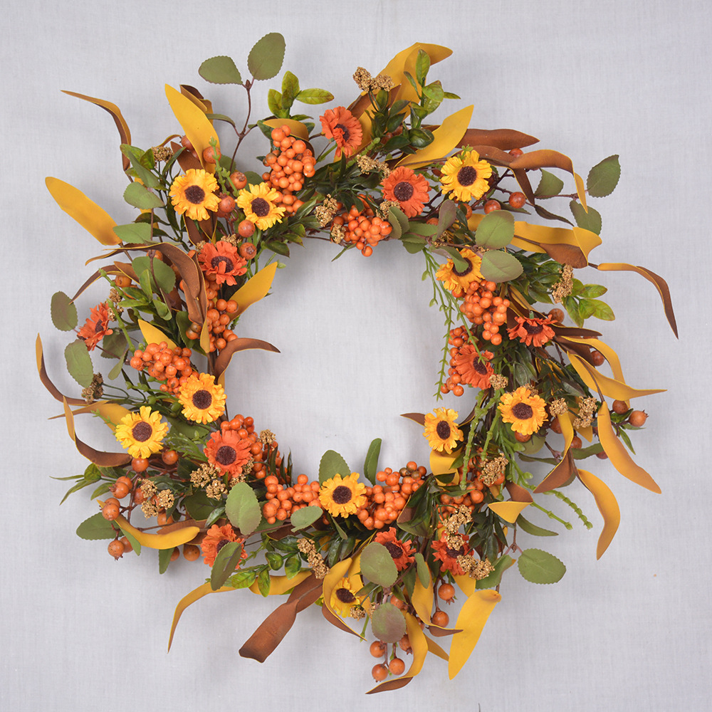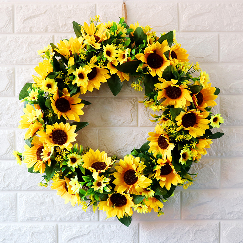 Artificial Sunflower Wreath Flower Wreath With Yellow Sunflower And Green Leaves