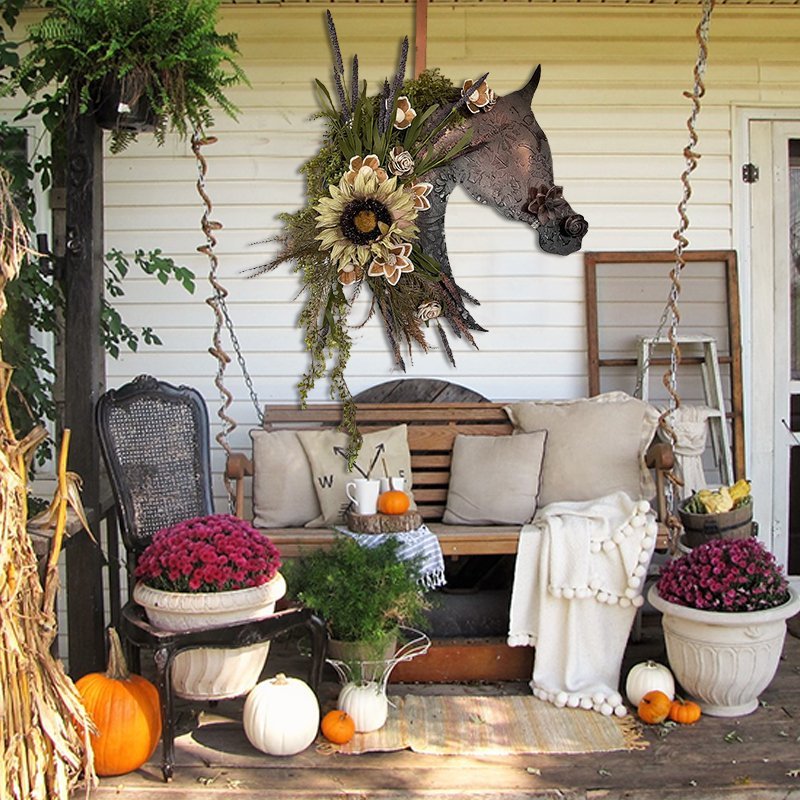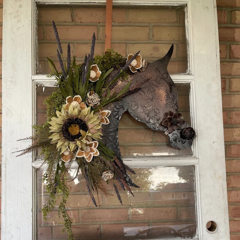 Autumn equestrian wooden flower door hanger- Entry Way Wall Hanger