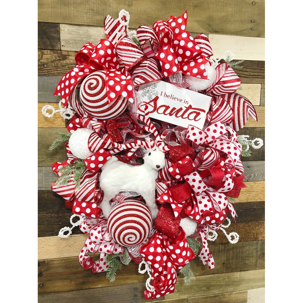 Winter wreath for front door ,with white winter deer ornaments and sign