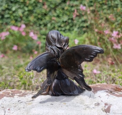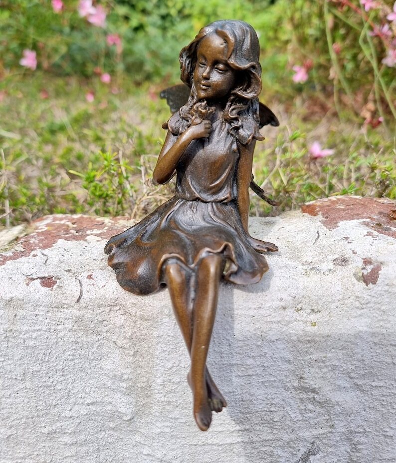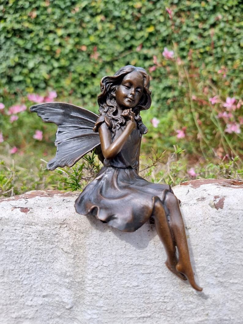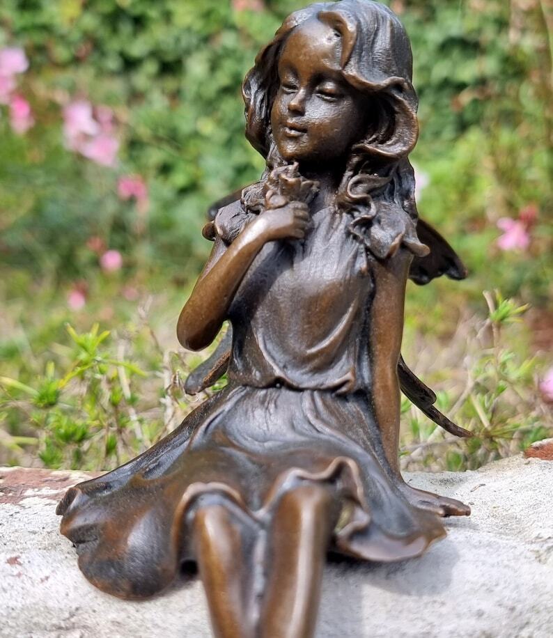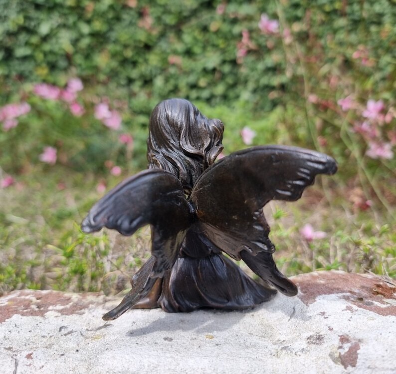 Gracefull Bronze fairy - Windowsill fairy - Sitting pixie with butterflly - Forest fairy - Angel figurines