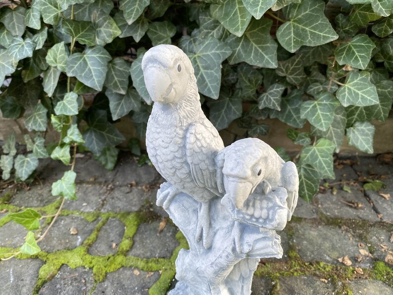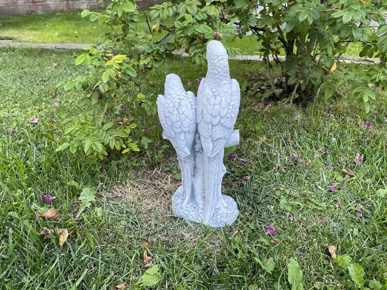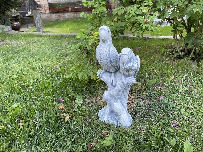 Small Parrot Statue, Concrete Bird Figurine, Outdoor Bird Statue, Hand Cast Stone Bird Sculpture, Parrot Ornament, Yard Art, Garden Decor