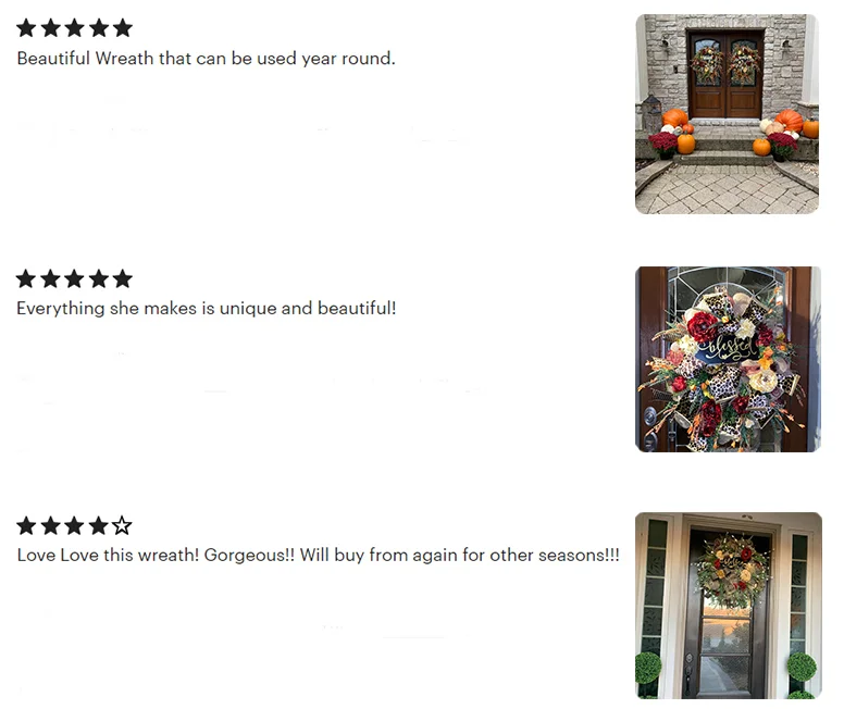 Unique charm:🌺This is an elegant traditional wreath, perfect for the entire season. The sign is custom-made by a talented artisan.It has beautiful foliage nestled in the hydrangeas and lovely deep red florals.🍂🍁Double bows in gold and black. Cheetah is a plus.