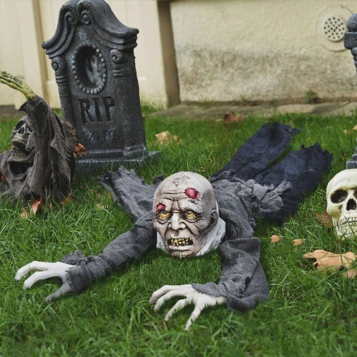 Halloween indoor& Outdoor decoration: Fun Little Toys touch activated crawling zombie Halloween animated prop would be perfect Halloween décor in spooky vibe.