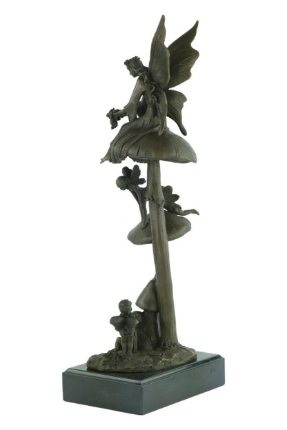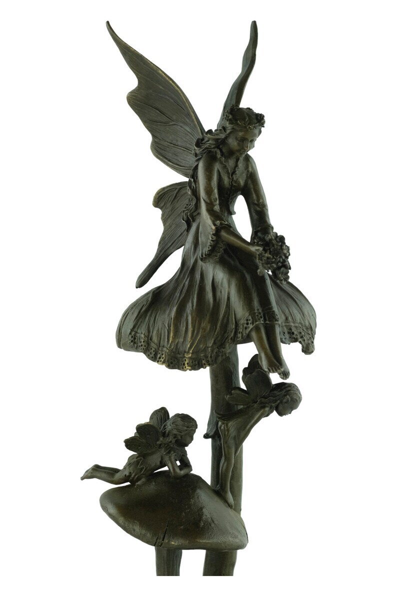 Large Bronze Fairies on Mushrooms Statue Bronze Fairies Sculpture Mythology Figurine Winged Fairy Art Bronze Art Sculpture Fairy Decoration