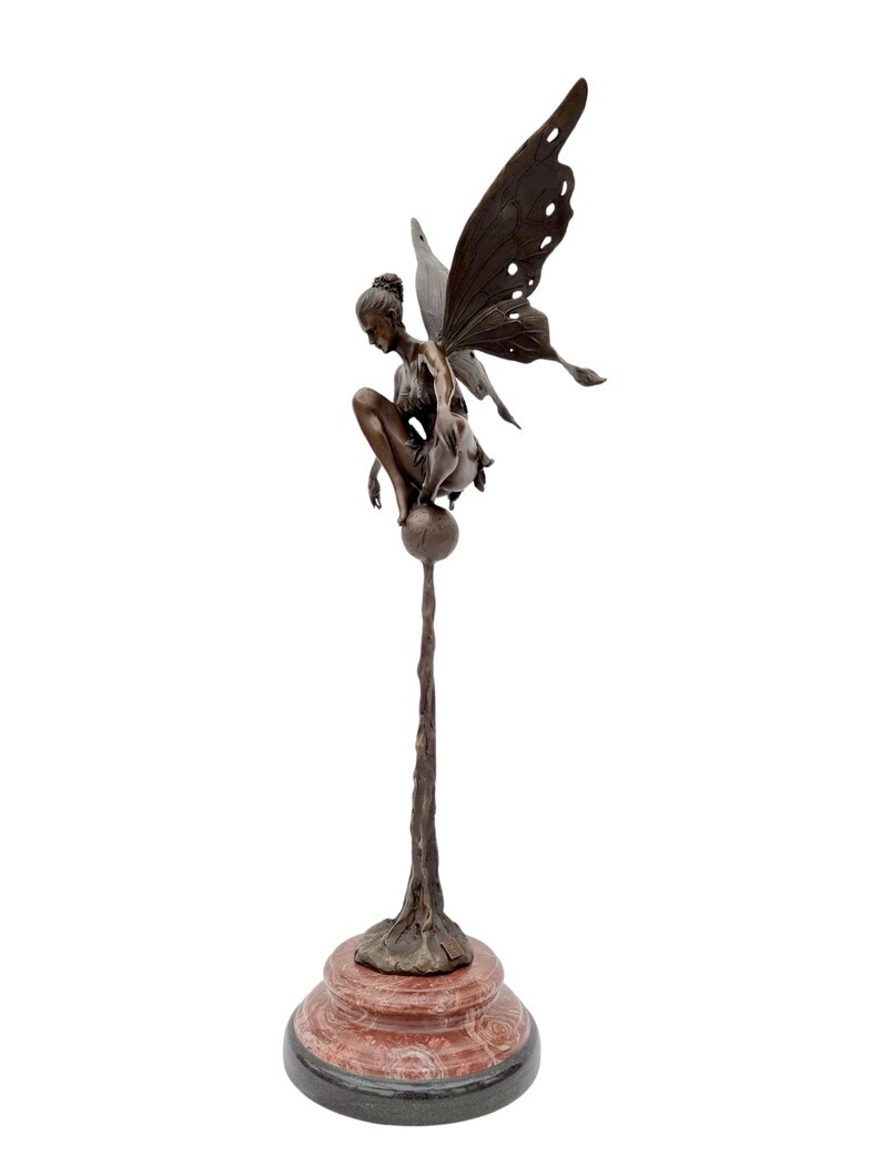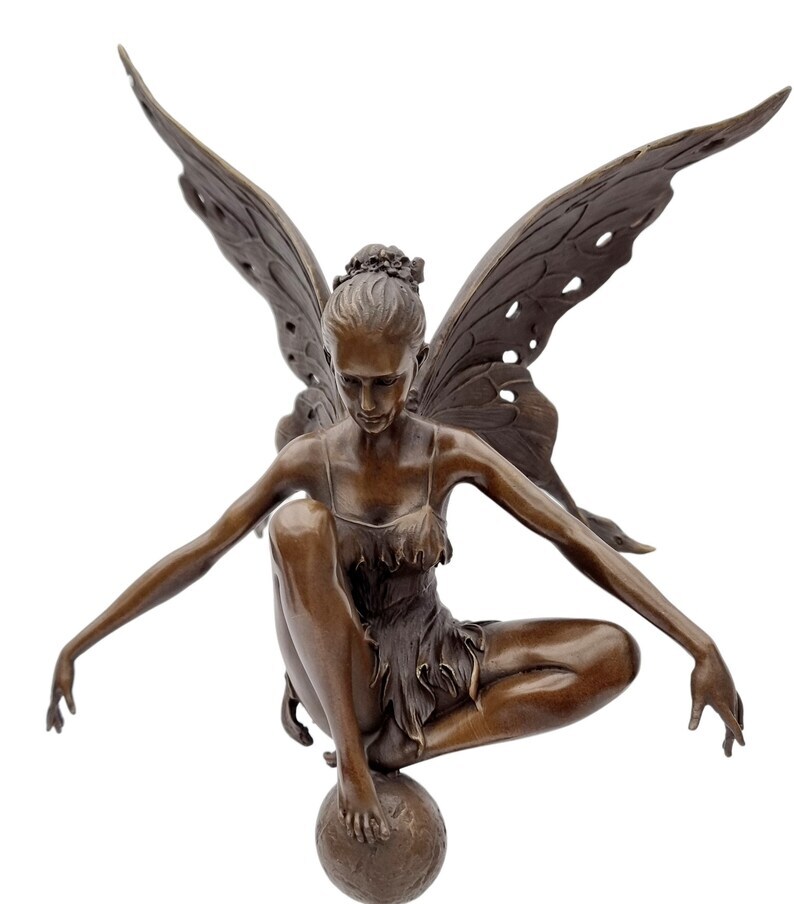 Large bronze fairy on sphere - Seated fairy - Magic sculpture