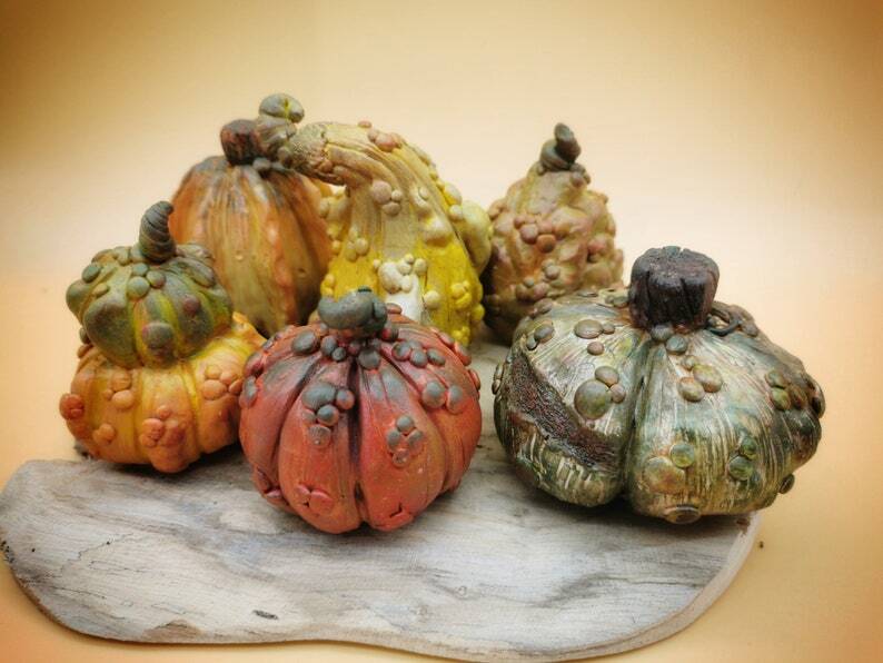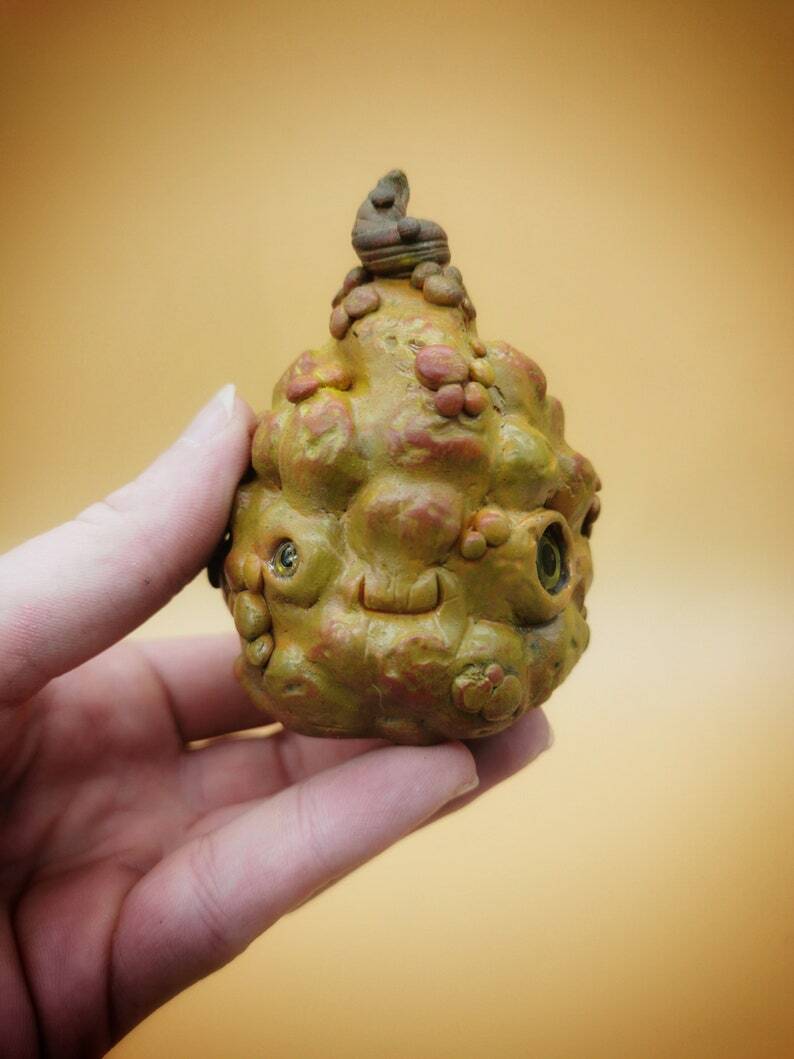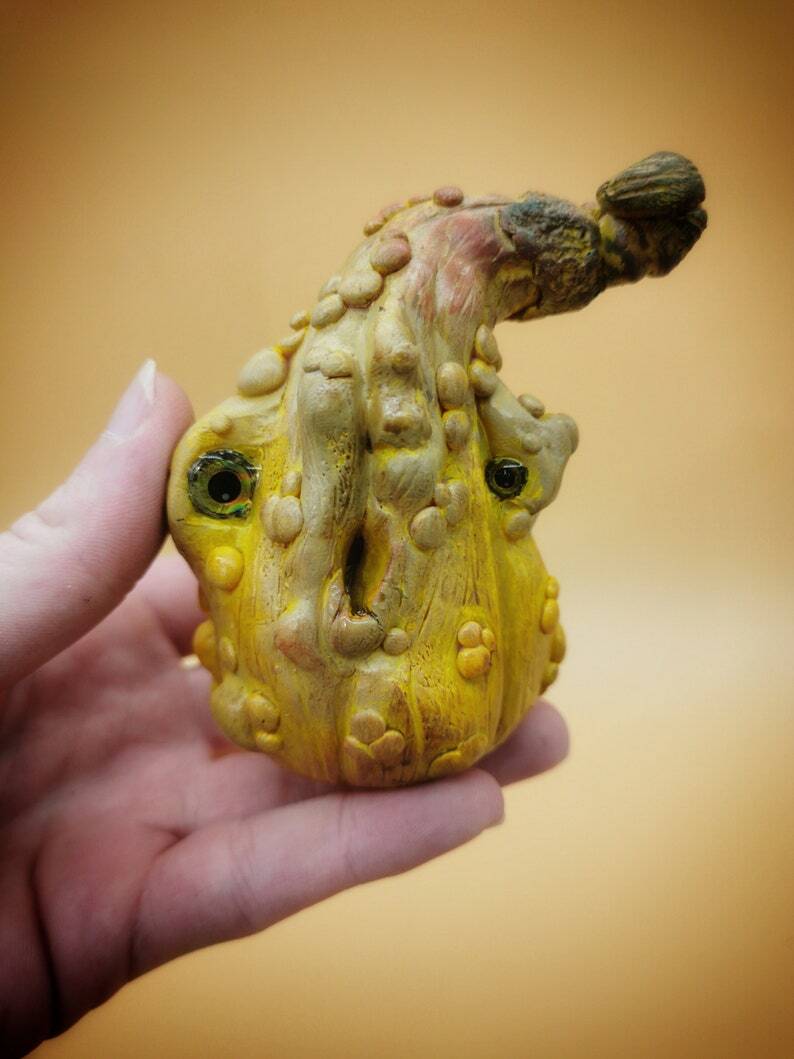 Handmade polymer clay fairy creatures - unique pumpkin monster fantasy sculptures Halloween arttoy ooak