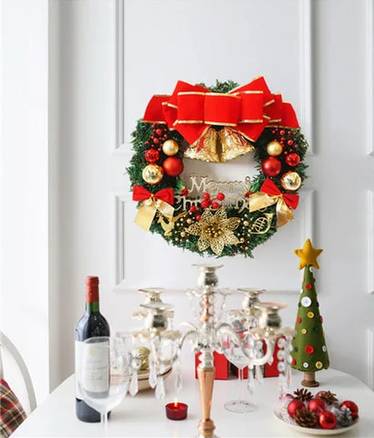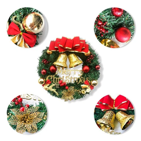 • Beautiful Christmas Elements – the wreath is decorated with big red bowknot, gold bells, reindeer, red balls, flowers, green pine twigs, and Merry Christmas letters, add joy to your Christmas