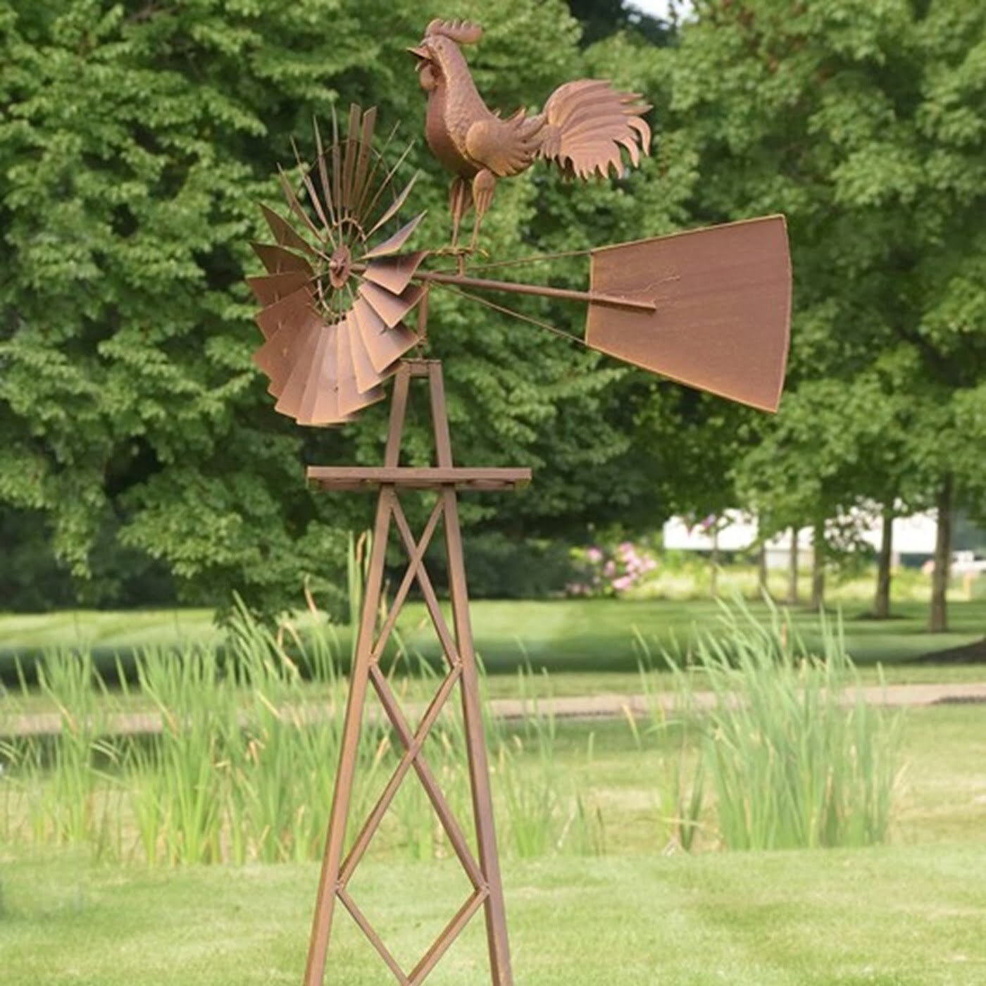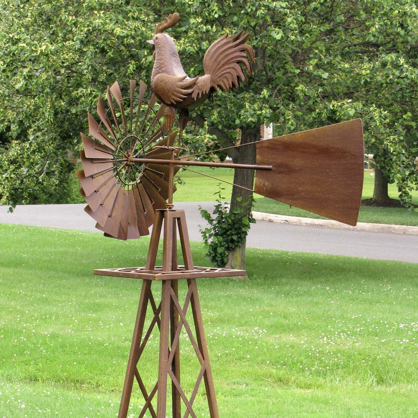 8ft. Tall Large Iron Windmill Stand with Rooster