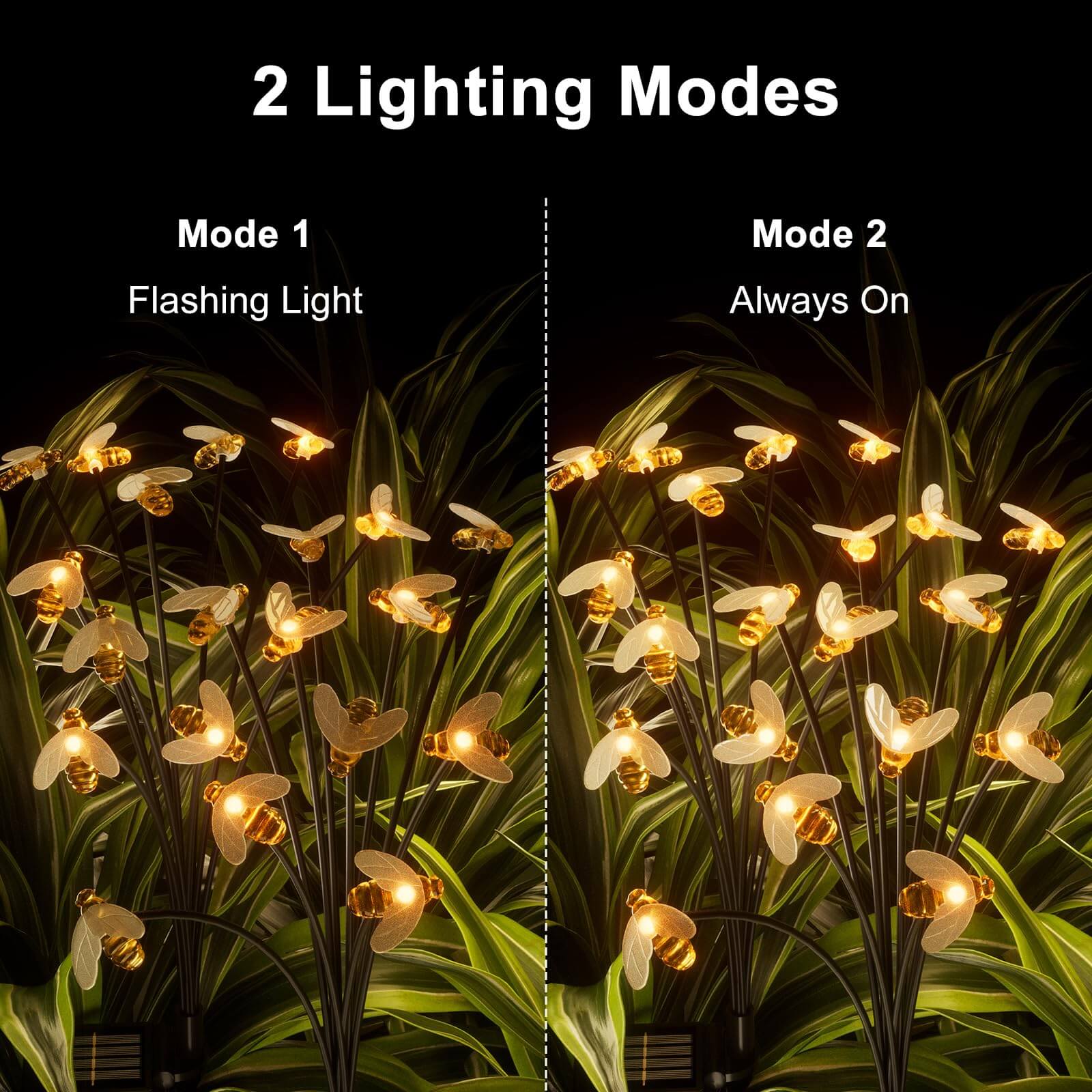 Catering to your diverse lighting preferences, our Solar Bee Lights come with two engaging light modes: a steady 'always-on' mode and a playful 'blinking' mode. The always-on mode provides consistent illumination, bringing a gentle glow to your spaces. On the other hand, the blinking method mimics the charming twinkle of stars, injecting a dash of whimsy into your outdoor decor. Switch between the modes effortlessly to match your mood or the ambiance of the occasion.