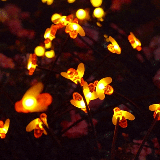 Experience the beauty of soft, fluttering illumination with our unique Solar Bee Lights. Designed with supple, flexible wires that sway with the breeze, these lights animate your outdoor space like a cluster of bees glowing at night. Watch as they 'fly,' transforming your evenings into a magical spectacle.