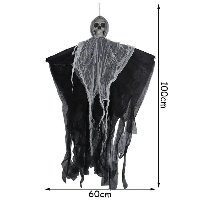 The spooky hanging ghost is made of environmentally and durable material combination, light, suitable for outdoor decoration. This horrific ghost face scarecrow is sure to terrify birds, deer, and even your neighbors!
