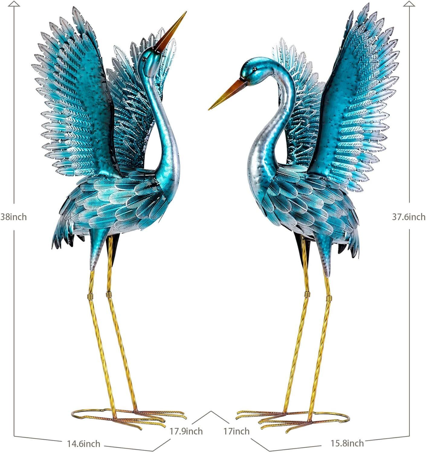Majestic garden decoration: Garden crane statues are so realistic. The beautiful blue heron pair statues posed to fly that add elegance and energy to our garden. Delicate carving and hand-painted blue finish make the metal crane statues look exquisite and vivid.