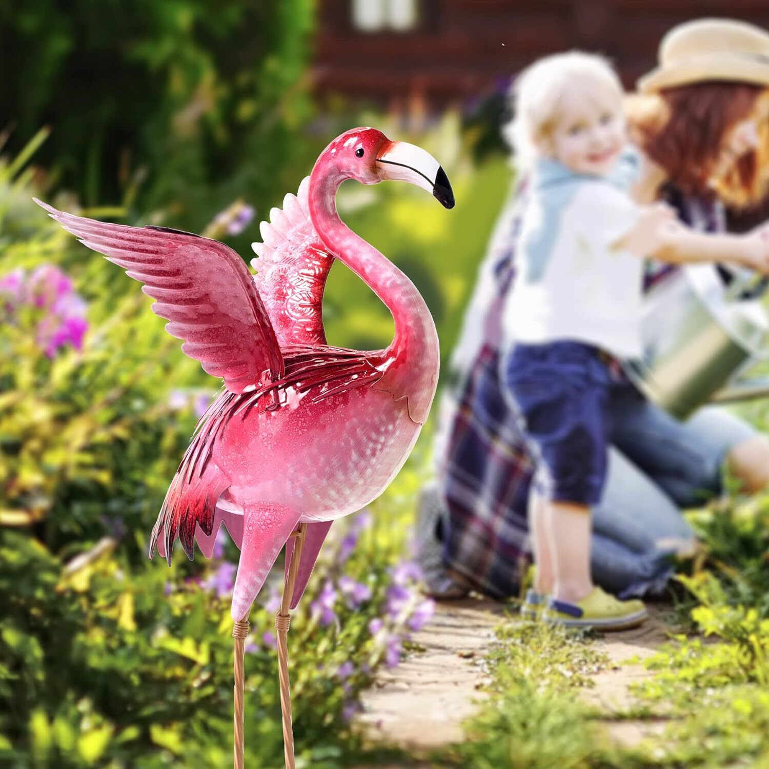 Exquisite Garden Decor: Flamingo yard decoration is made of textured and layered metal sections, spiritual wing pose and hand-painted bright pink finish, which make it exquisite and vivid. A gorgeous paint job on the bird adds brightness & color to your yard.
