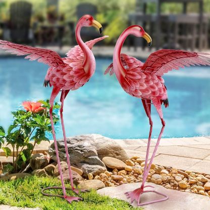 Garden Flamingo Statues and Sculptures, Outdoor Metal Bird Yard Art, Pink Flamingo Lawn Ornament for Patio Backyard Porch Decorations