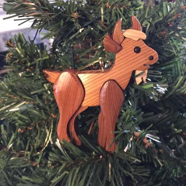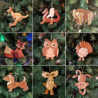 Hand-Carved Wooden Animal Christmas Ornaments