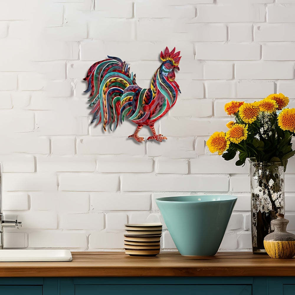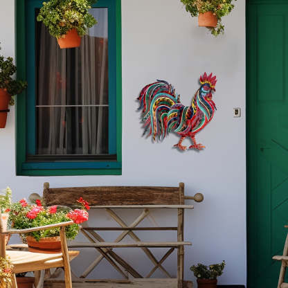 Handcrafted Colorful Metal Rooster Wall Art