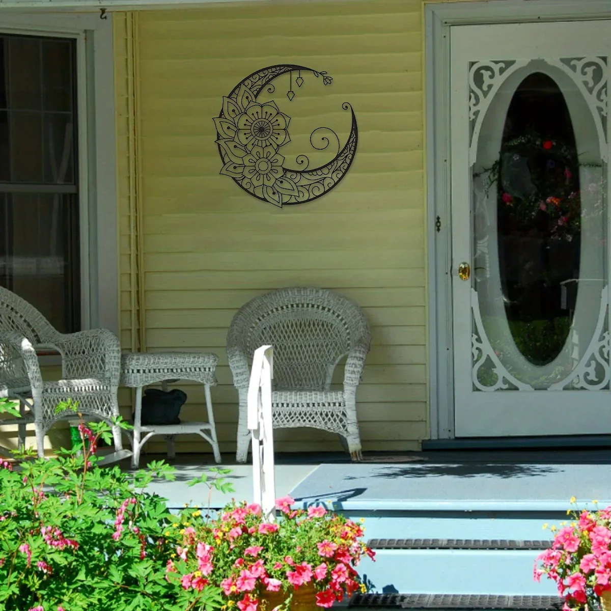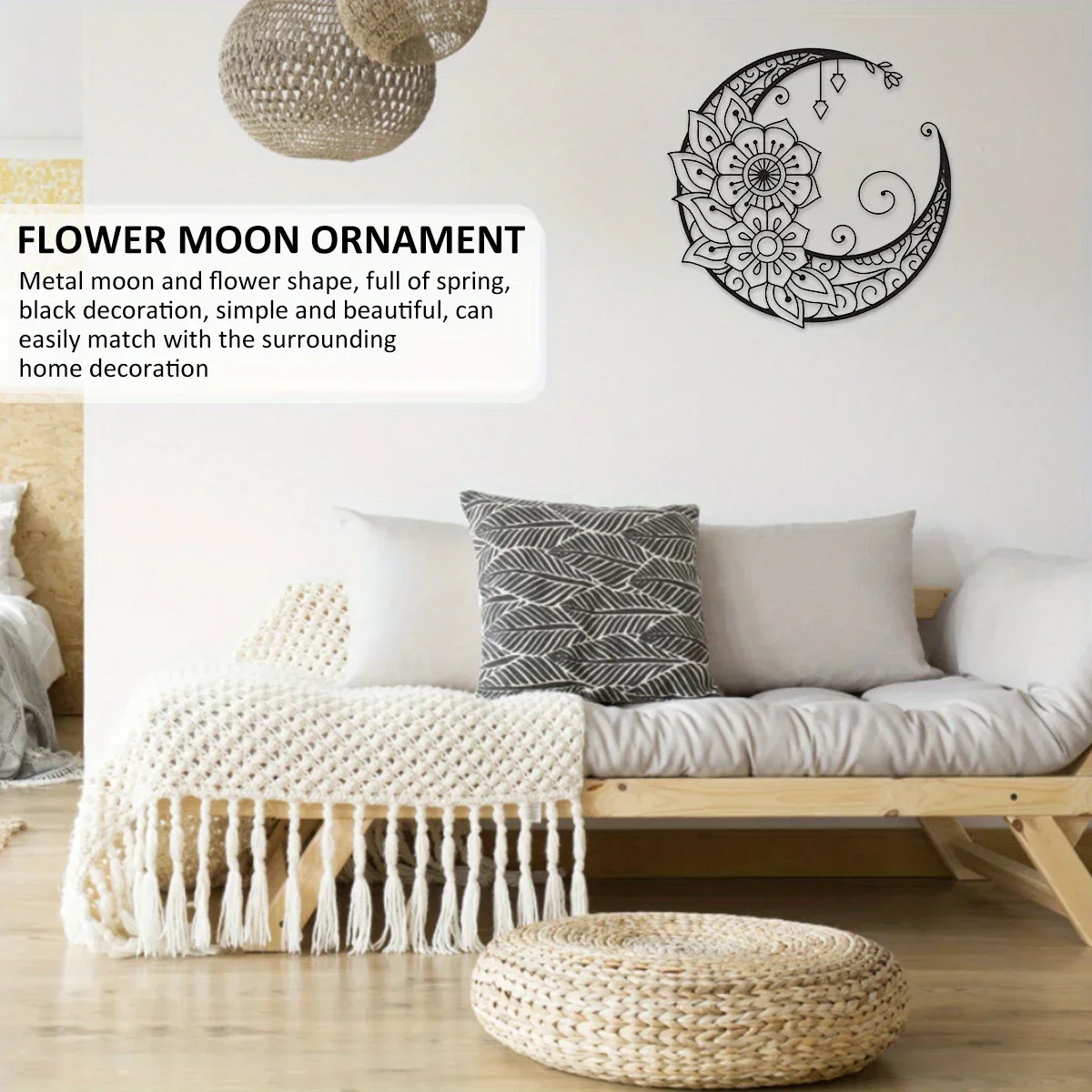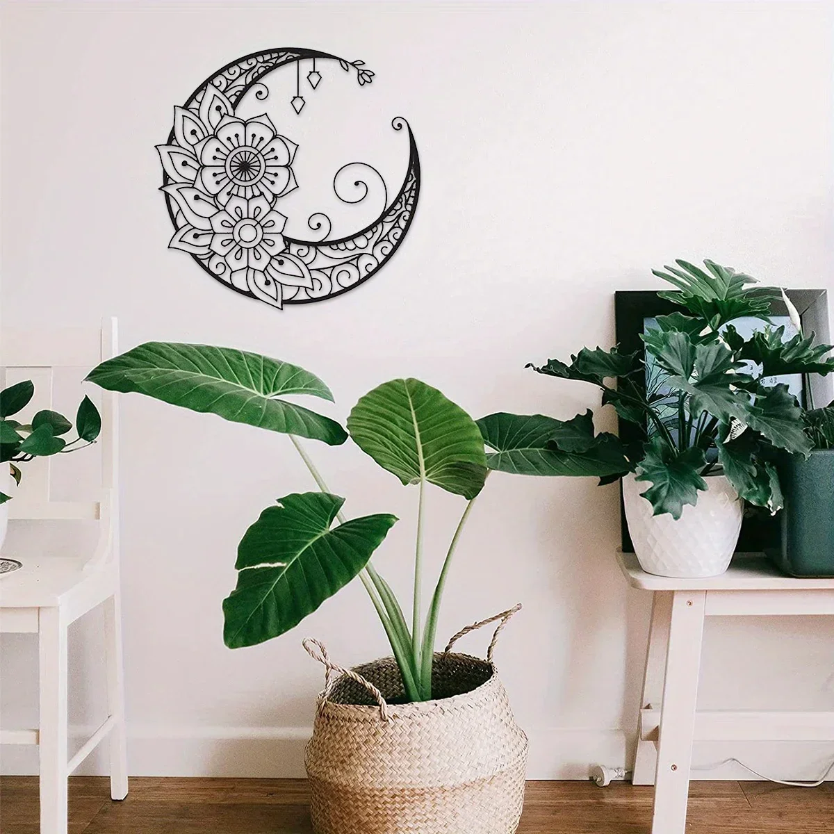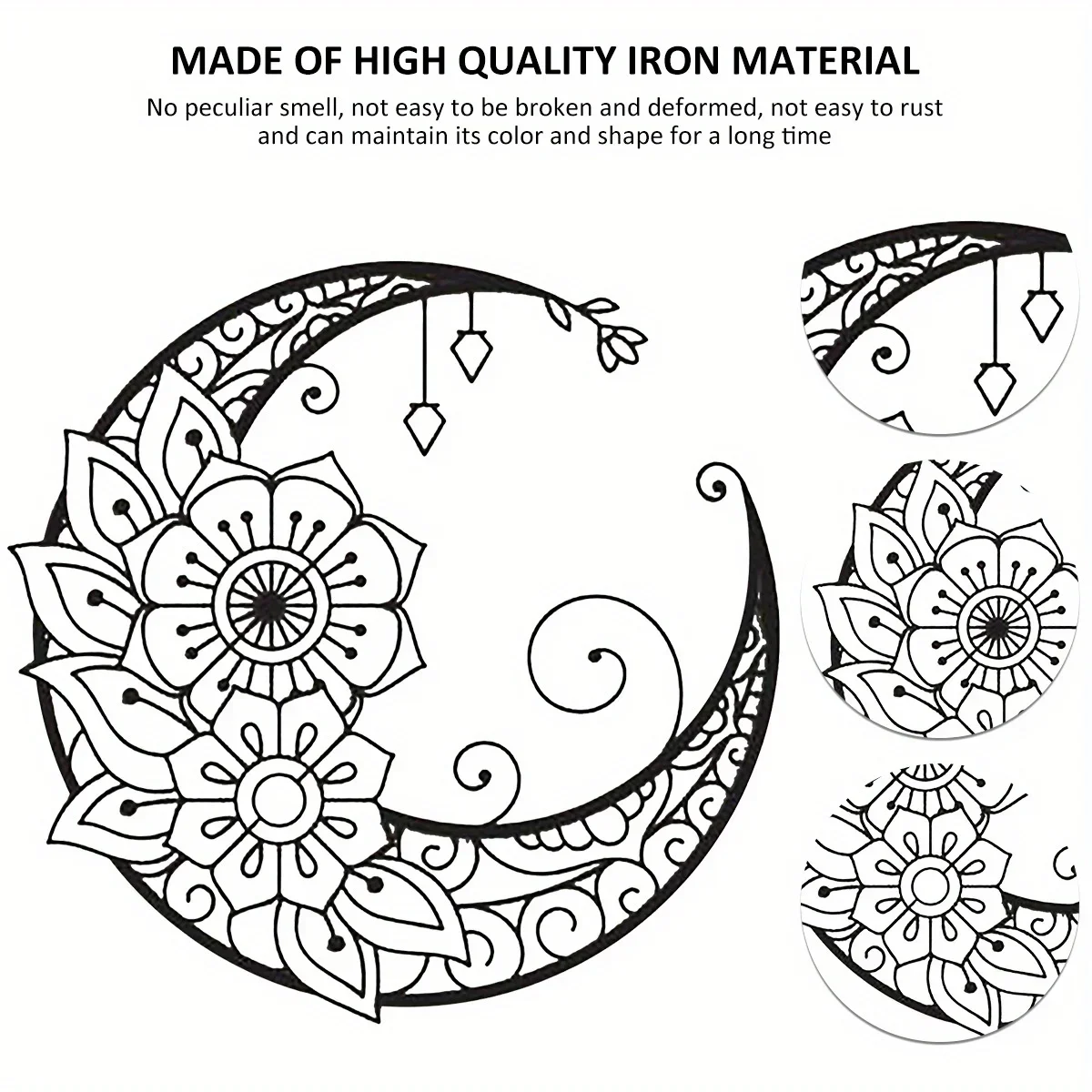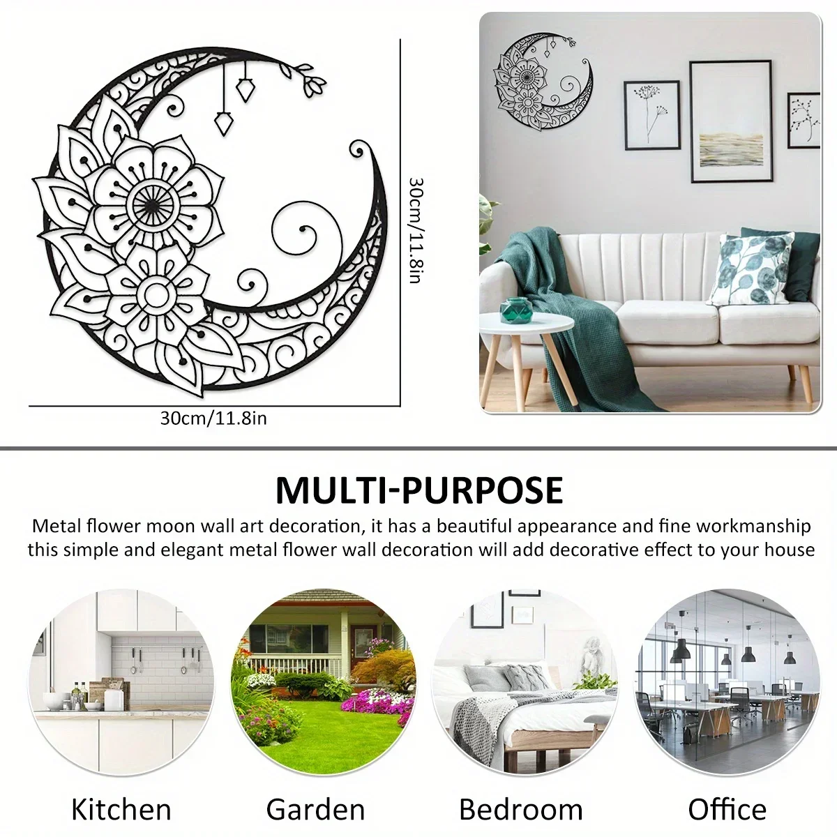 Mandala Flower Moon Metal Wall Art - 11.8-Inch Decorative Hanging Sign for Modern Boho Home Décor, Living Room, Bedroom, and Office Accent Piece