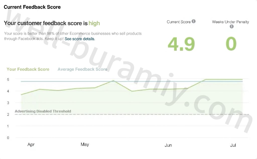 The score is better than 98% of other Ecommerce businesses who sell products through Facebook ads.