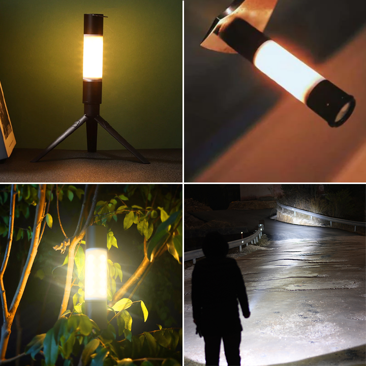 Outdoor camping light with a tripod is also a zoomable magnetic flashlight, a must-have for dimming camping gear and cars, providing you with more variety of brightness solutions.