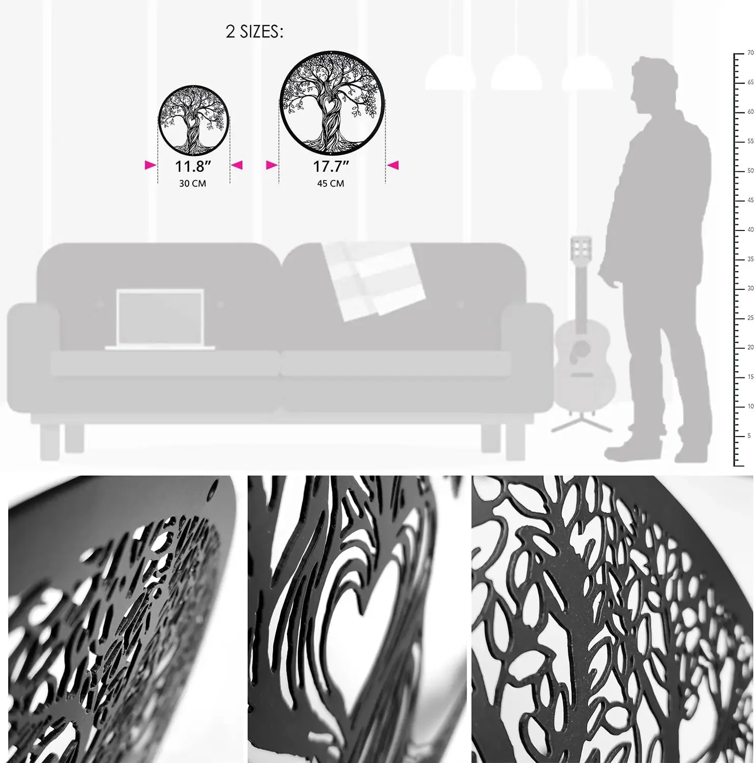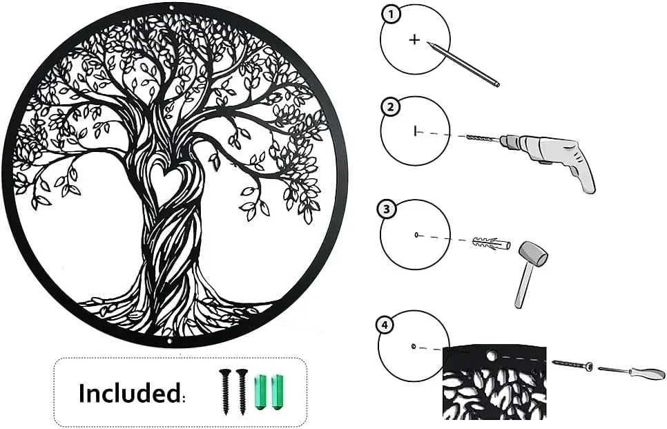 Rustic Black Tree of Life Metal Wall Art – Laser Cut Sculpture for Living Room, Bedroom, Indoor & Outdoor Home Decor