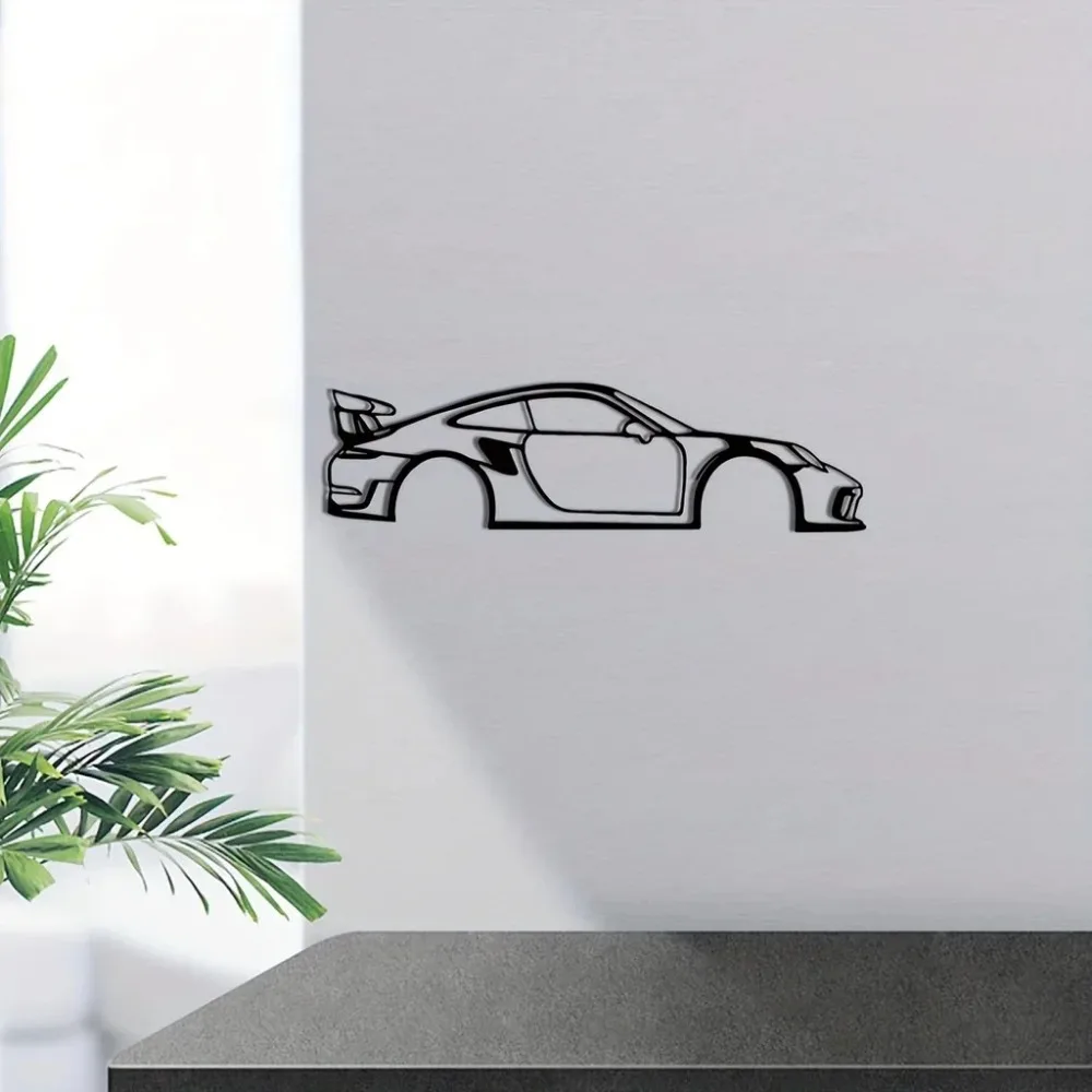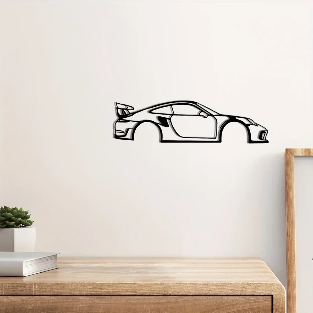 Sports Car Metal Wall Art - 911GT3 Iron Silhouette Wire Hanging for Modern Home & Office Decor